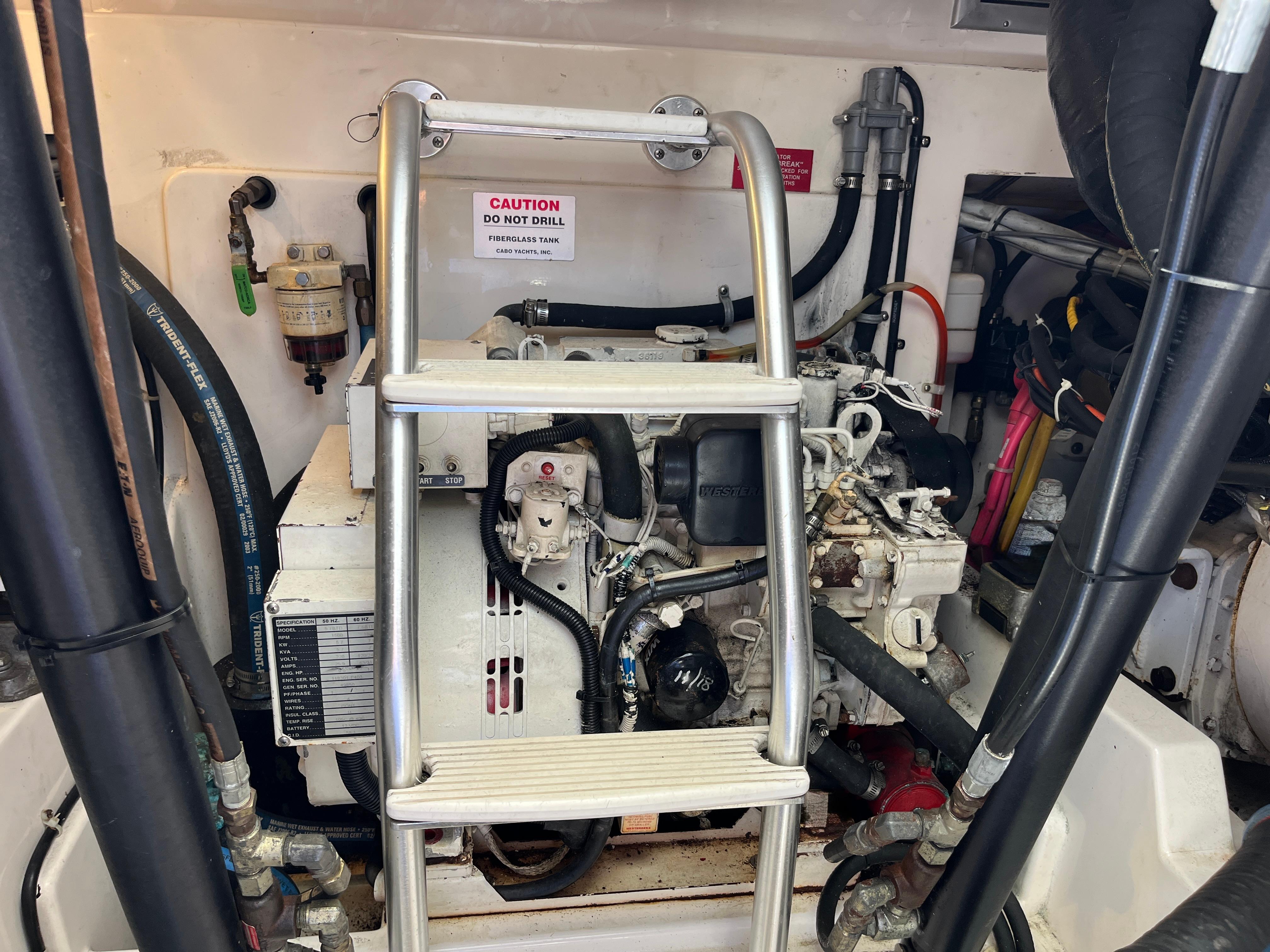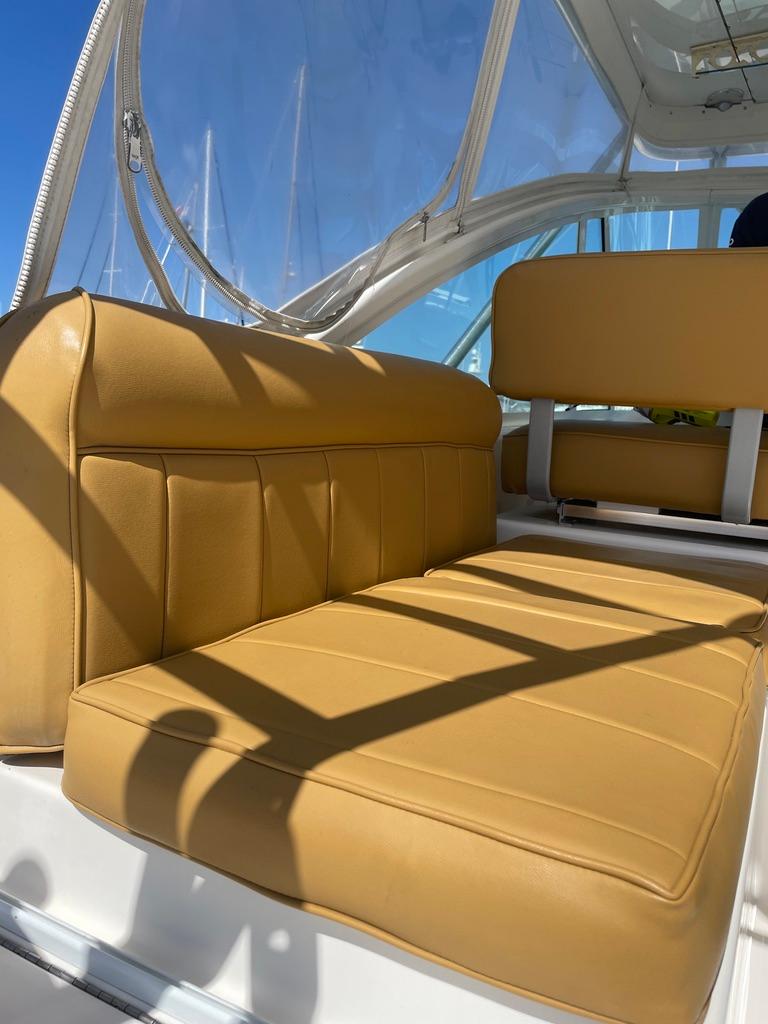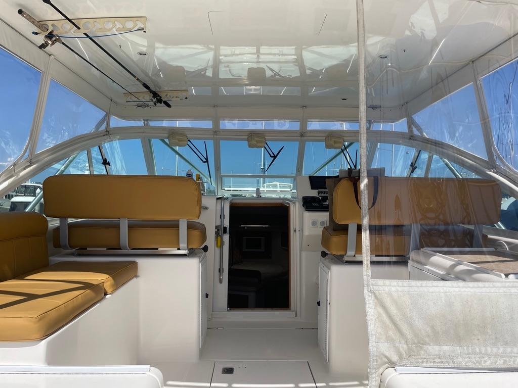 Low hour 2004 35' Cabo Express comes with desirable features and ready for her next offshore excursion. The CAT 3126's have updated aftercoolers, full electronic engine controls and instrumentation at the helm and tower. Garmin Electronics Package with a 1KW transducer. Built in transom bait tank, complete tackle center, and an in-deck fish hold with refrigerated cold plates. LunaSea deck lights for night time tuna fishing. She has been updated throughout and is ready for her next adventure.