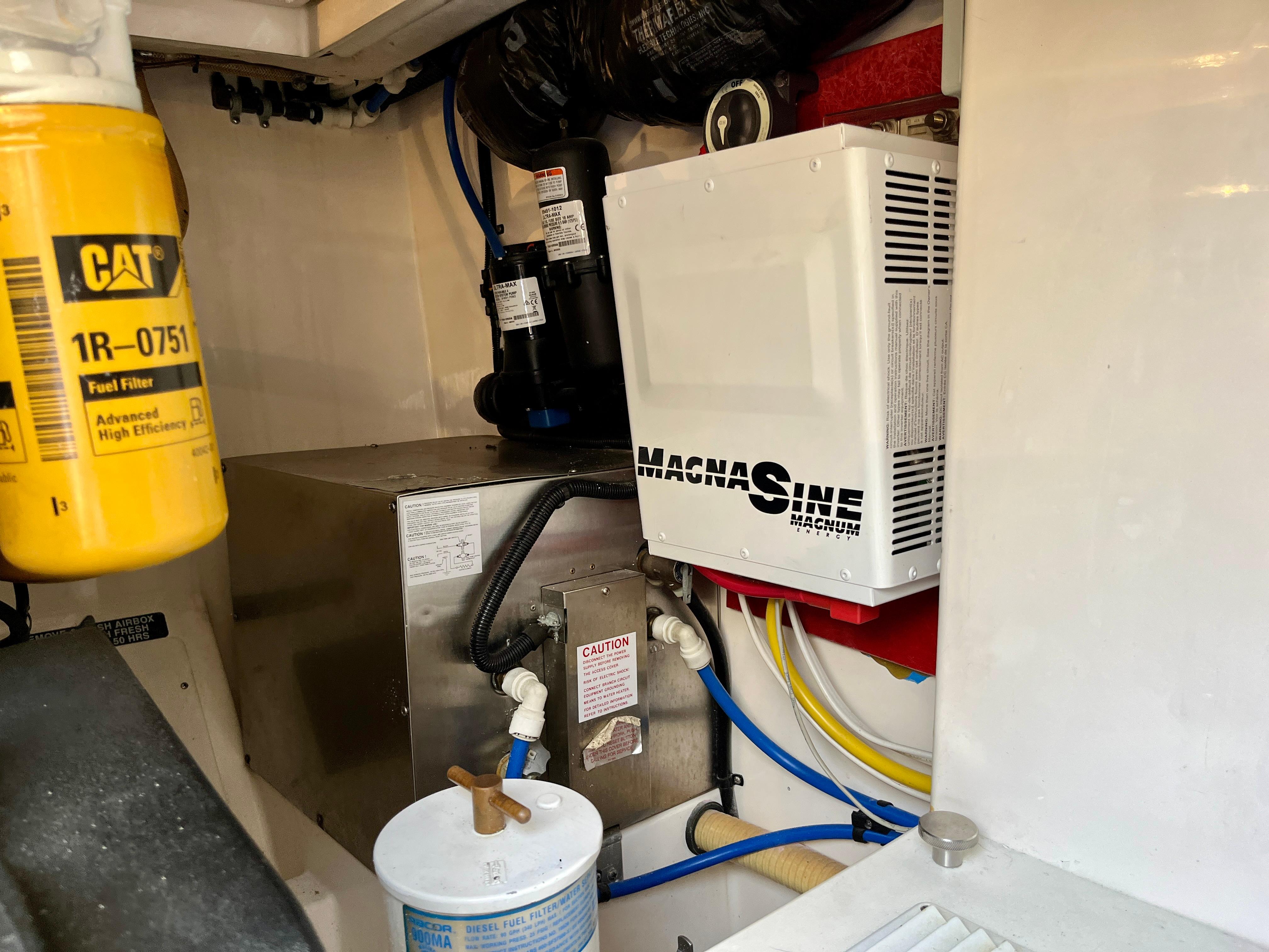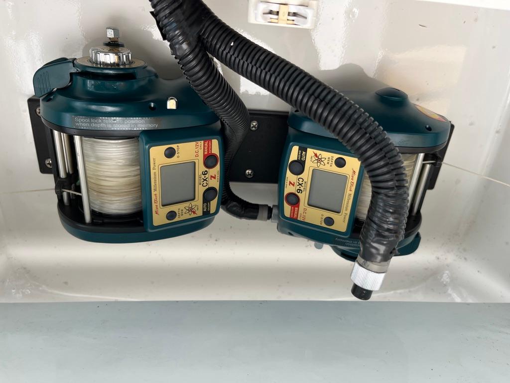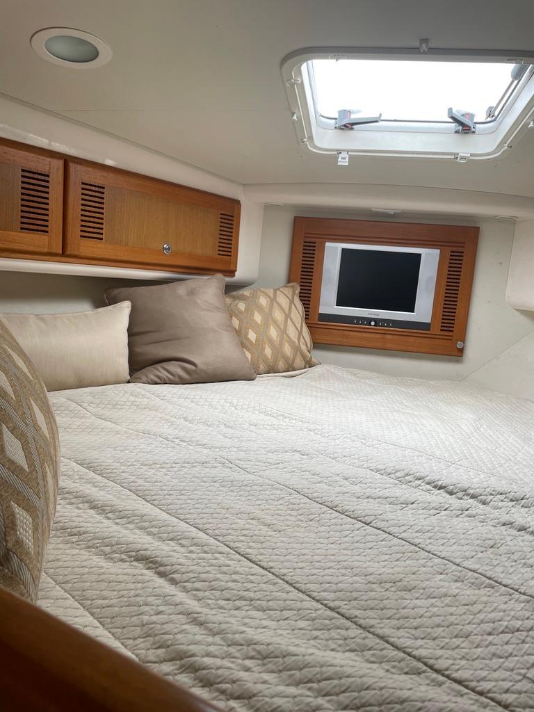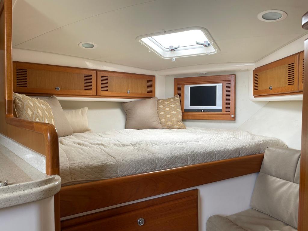 Low hour 2004 35' Cabo Express comes with desirable features and ready for her next offshore excursion. The CAT 3126's have updated aftercoolers, full electronic engine controls and instrumentation at the helm and tower. Garmin Electronics Package with a 1KW transducer. Built in transom bait tank, complete tackle center, and an in-deck fish hold with refrigerated cold plates. LunaSea deck lights for night time tuna fishing. She has been updated throughout and is ready for her next adventure.