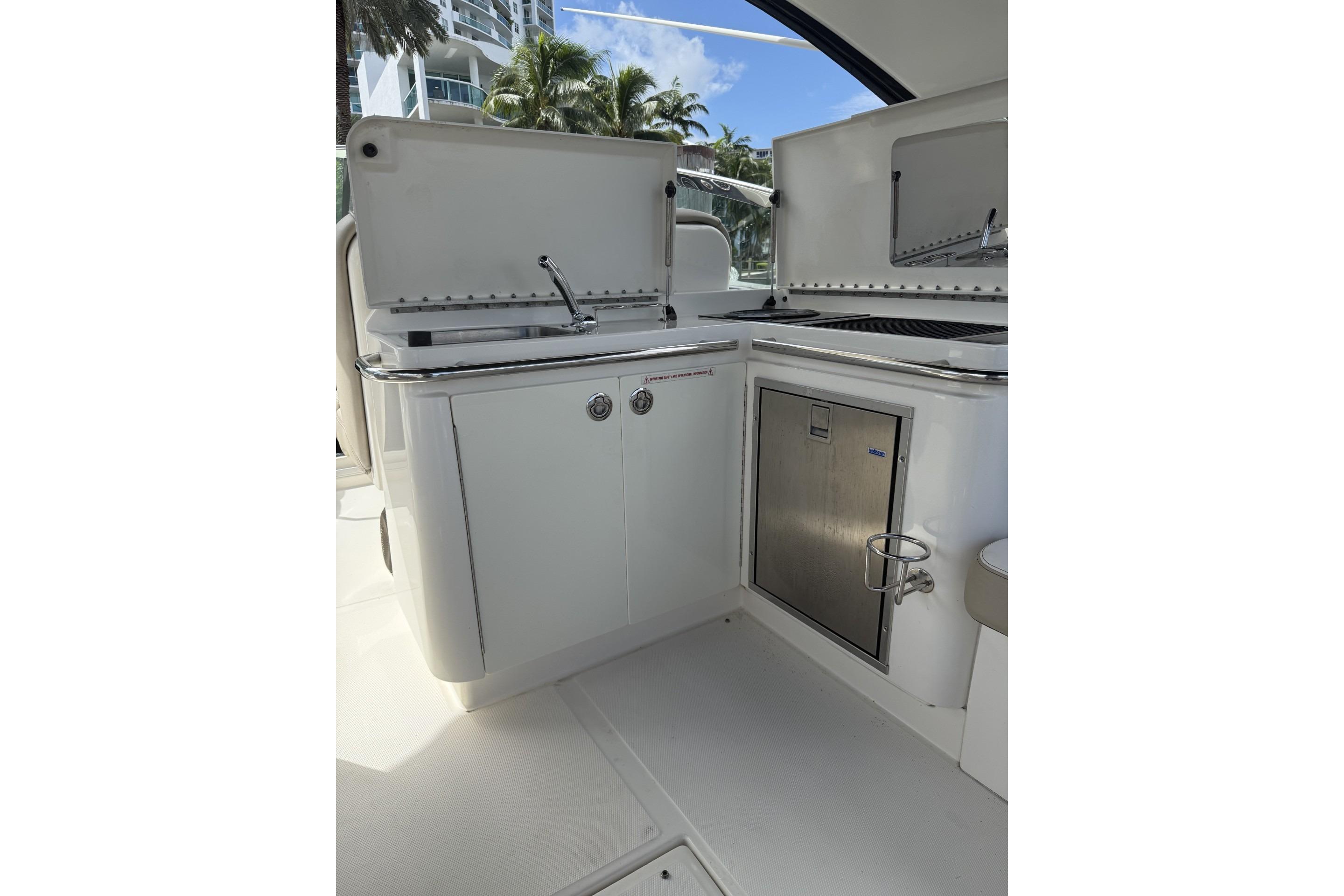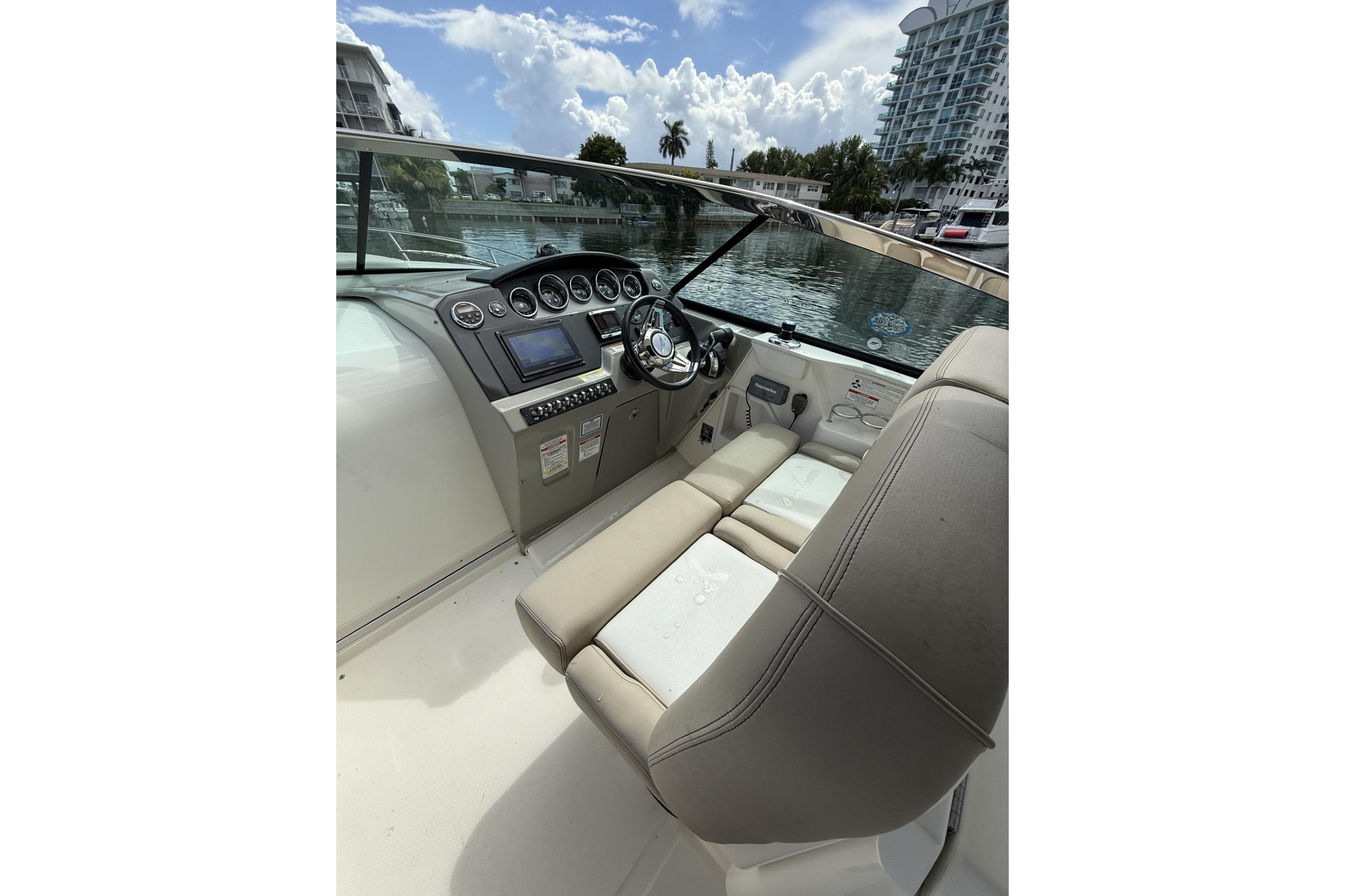 Building a better boat is about staying one step ahead of the game. The 370 Venture does just that, with the innovative Concealed Outboard Propulsion™ design. With the engines hidden under a fiberglass hood that doubles as seating, living space is expanded by leaps and bounds while noise and vibration are kept to a minimum. The 370 Venture a prime example of Next Wave thinking, and it's leaving similar cruisers far behind.