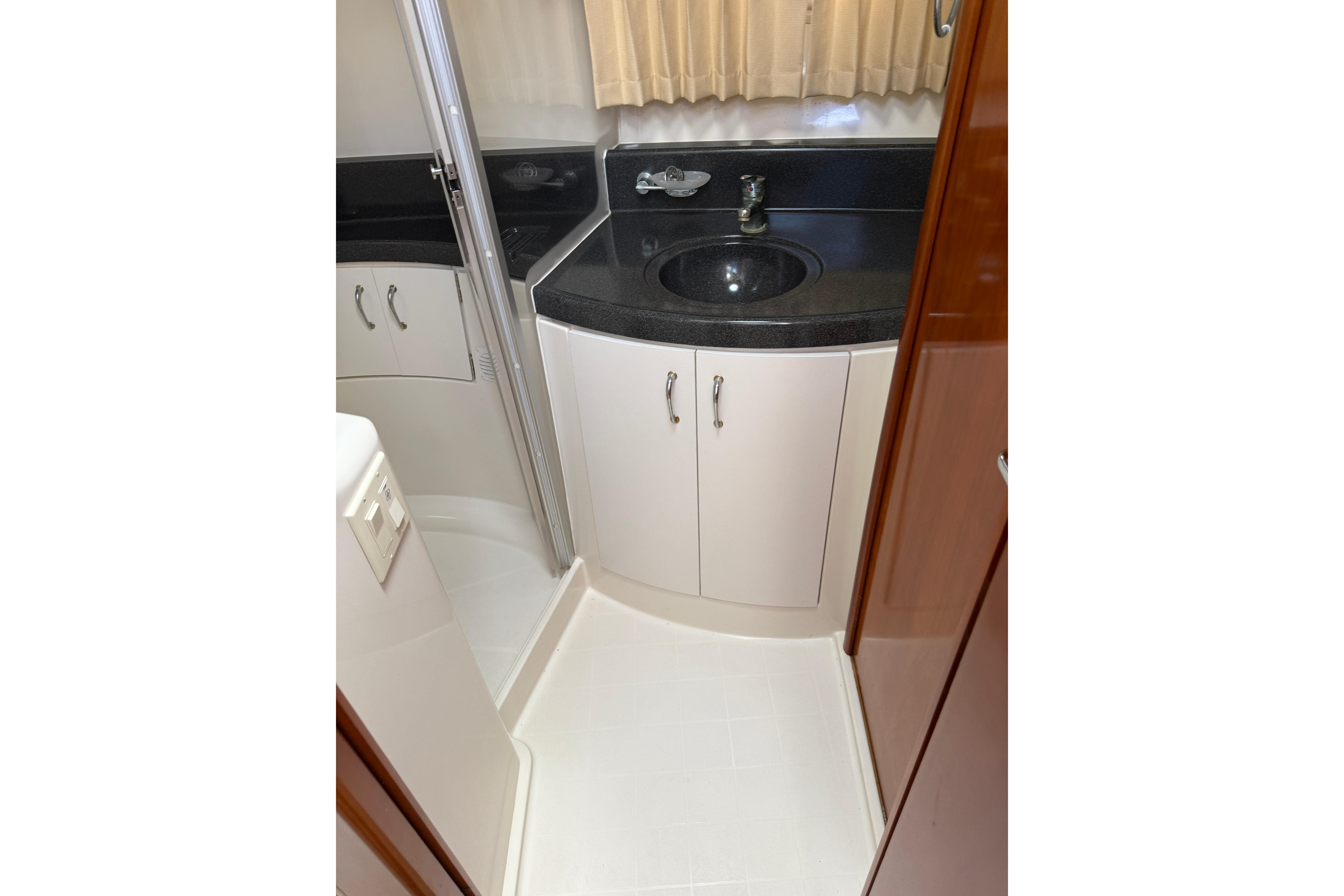 The Carver 360 Sport Sedan is wonderfully versatile. Whether cruising, fishing or diving, this sporty yacht will make anything more fun. Its attractive contemporary styling and signature two-tiered windows for extra light and style, make it one of the most-appealing vessels in its class. The spacious bridge with generous seating also includes a captain's chair and ergonomically designed dash. The large cockpit is the perfect size for all kinds of on-water activities. The cabin features a unique raised dinette / lounge with UltraLeather seating. Rich, cherry wood cabinetry with high-gloss finish adds warmth and beauty to the space. Sleeping accommodations include two staterooms.