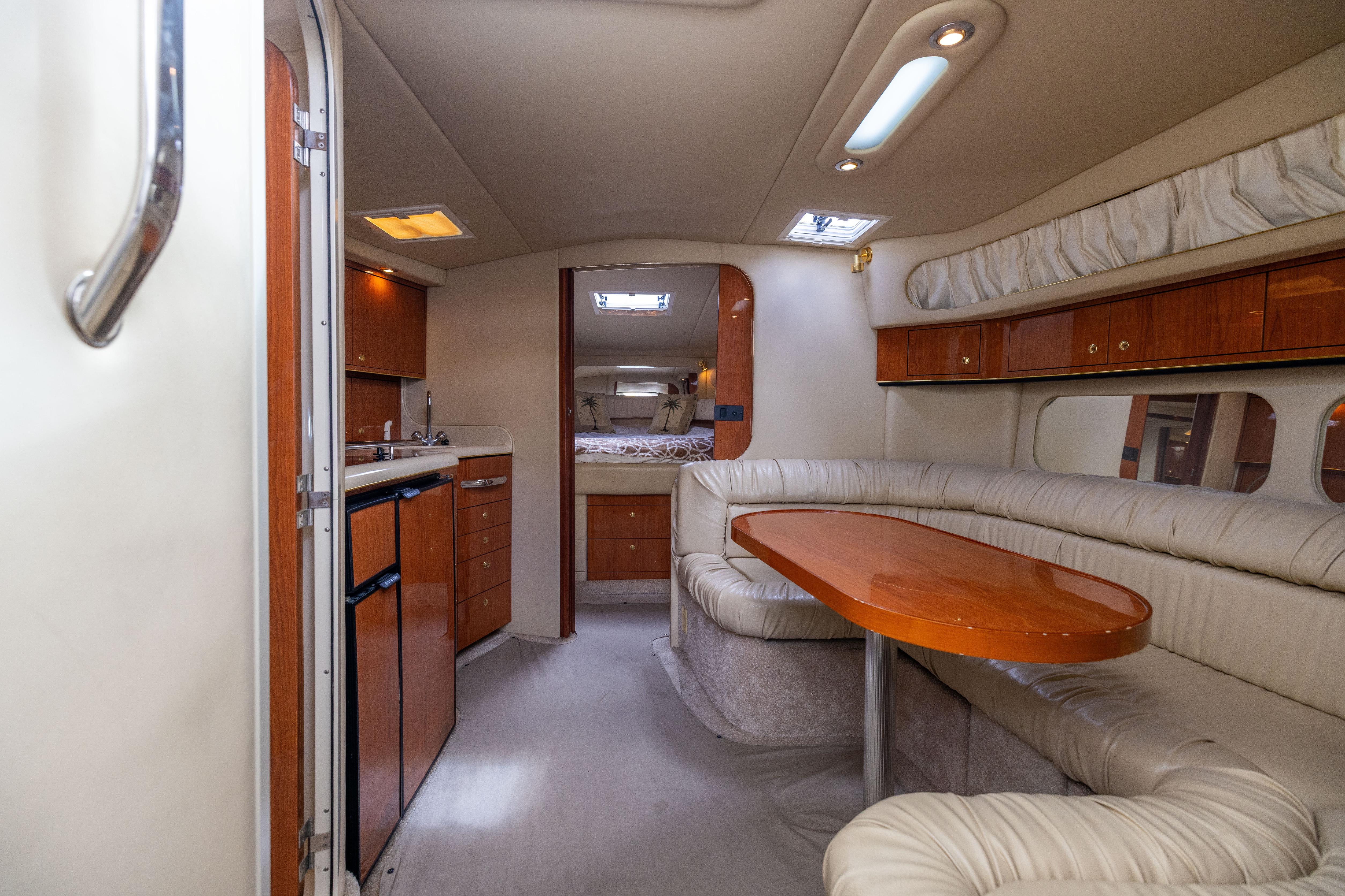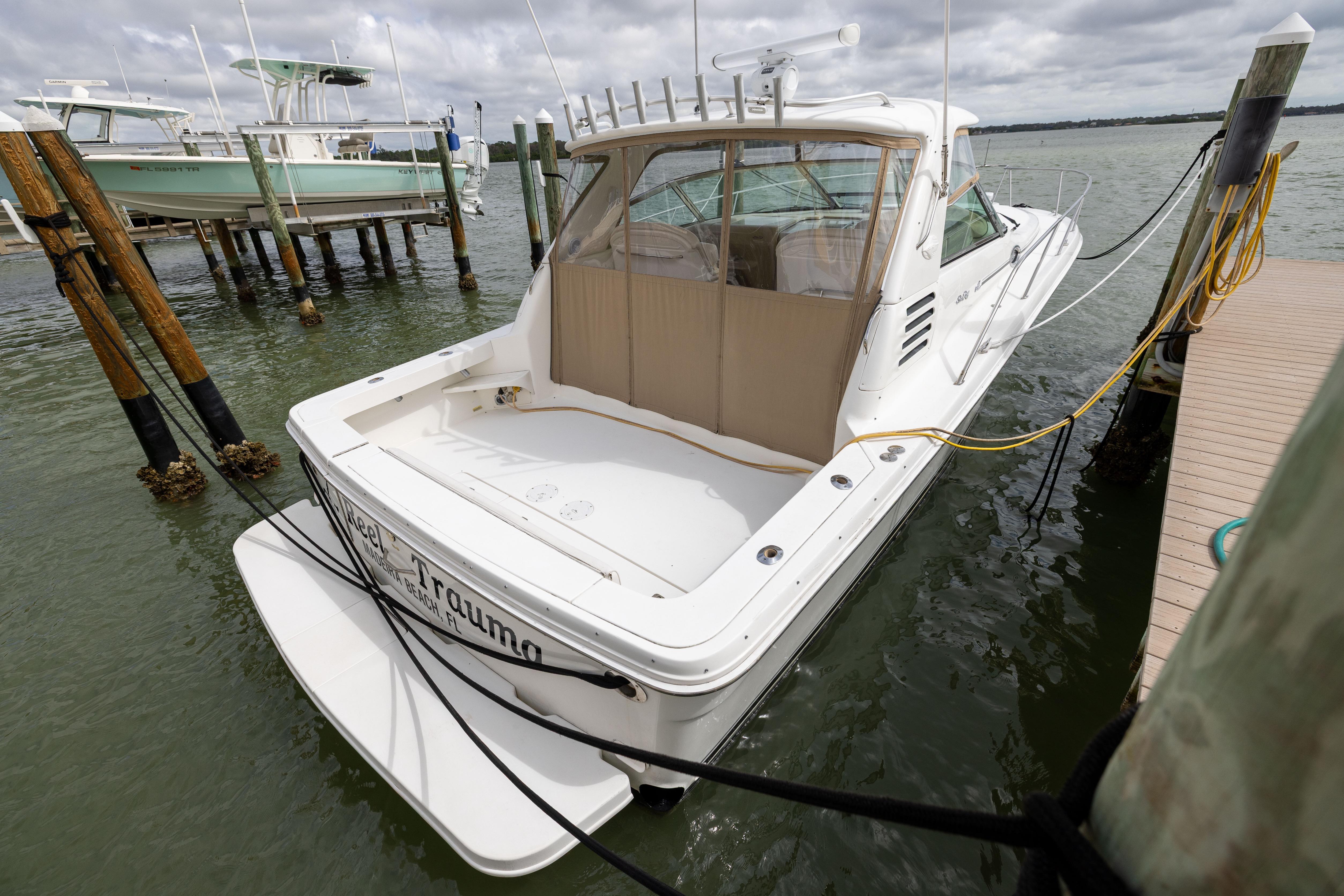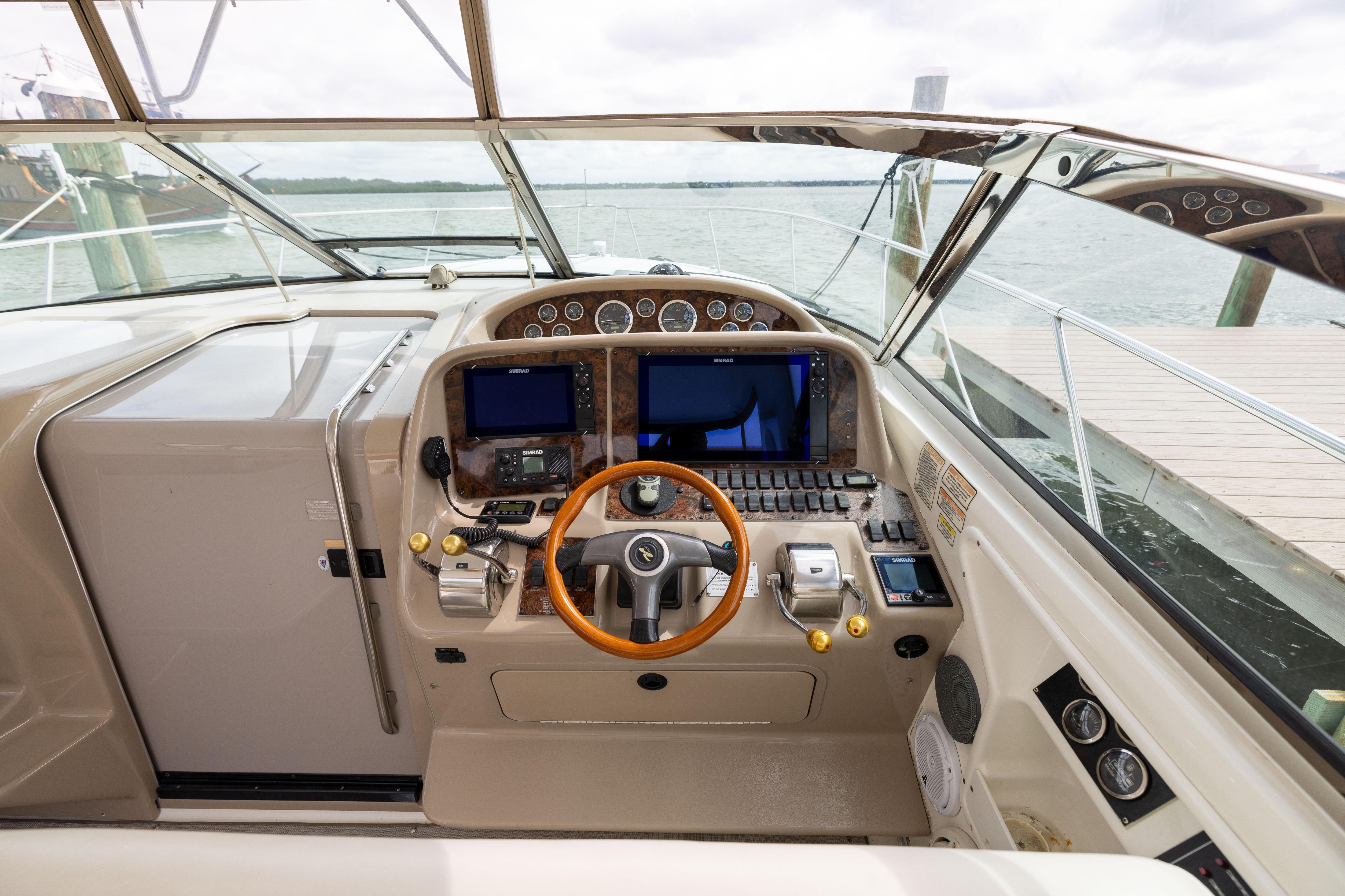 The 2000 Sea Ray 370 Express Cruiser has a wide-open dual-level cockpit design, raised bridgedeck, and wide 14-foot 2-inch beam to provide a dry and safe ride. The 370 Express Cruiser has an aggressive power plant - 350 horsepower twin Cats. Combined with a 350 gallon fuel capacity, that means it can go anywhere, and quickly. This is a great example of Sea Ray 370 Express that is in great running condition ! Call and schedule a showing today