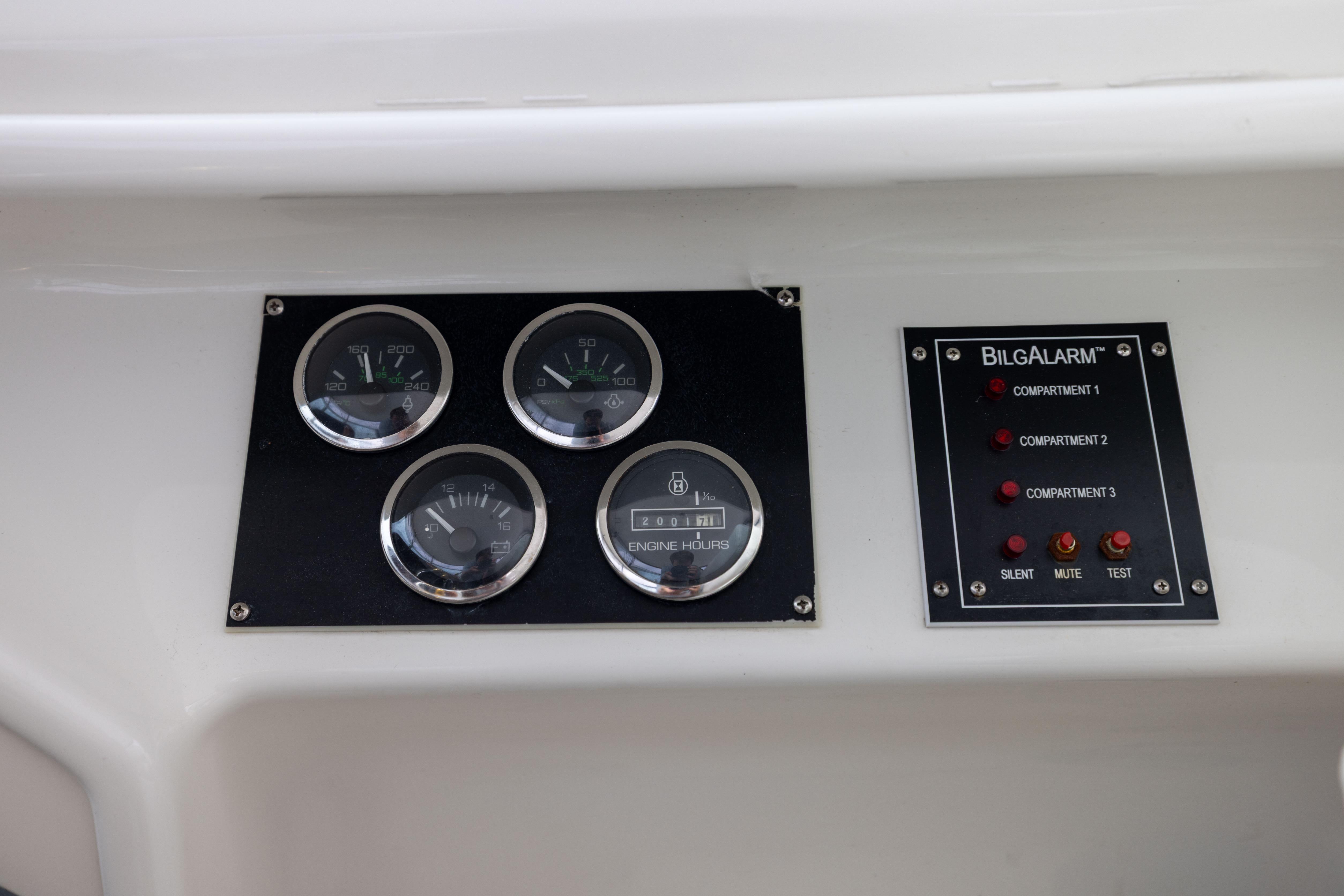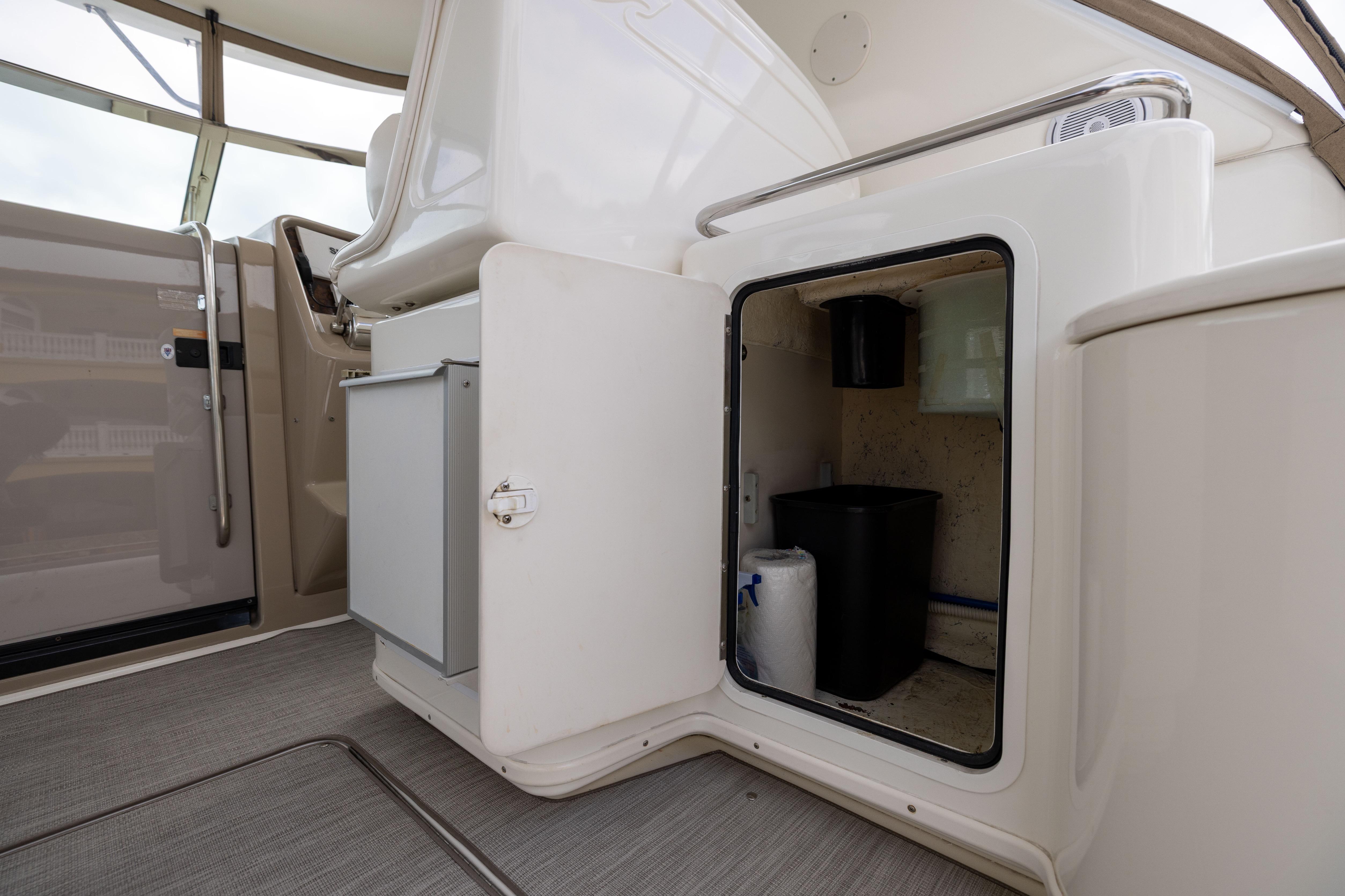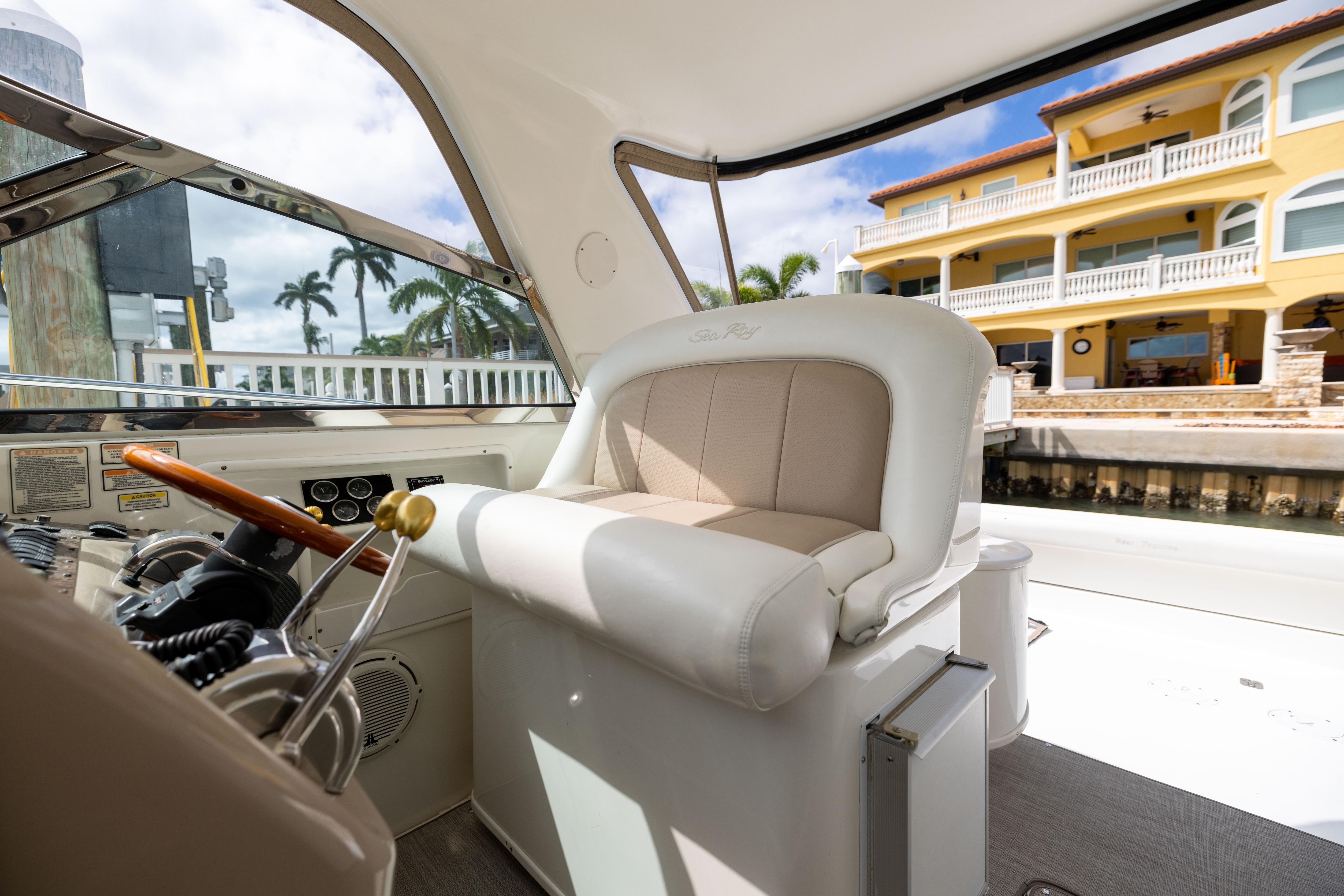 The 2000 Sea Ray 370 Express Cruiser has a wide-open dual-level cockpit design, raised bridgedeck, and wide 14-foot 2-inch beam to provide a dry and safe ride. The 370 Express Cruiser has an aggressive power plant - 350 horsepower twin Cats. Combined with a 350 gallon fuel capacity, that means it can go anywhere, and quickly. This is a great example of Sea Ray 370 Express that is in great running condition ! Call and schedule a showing today