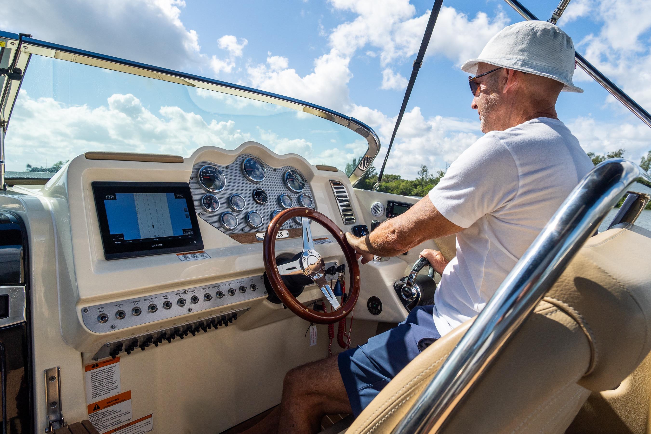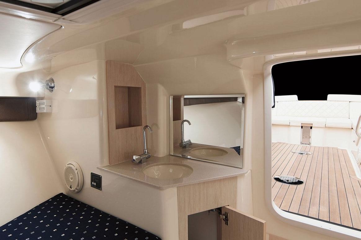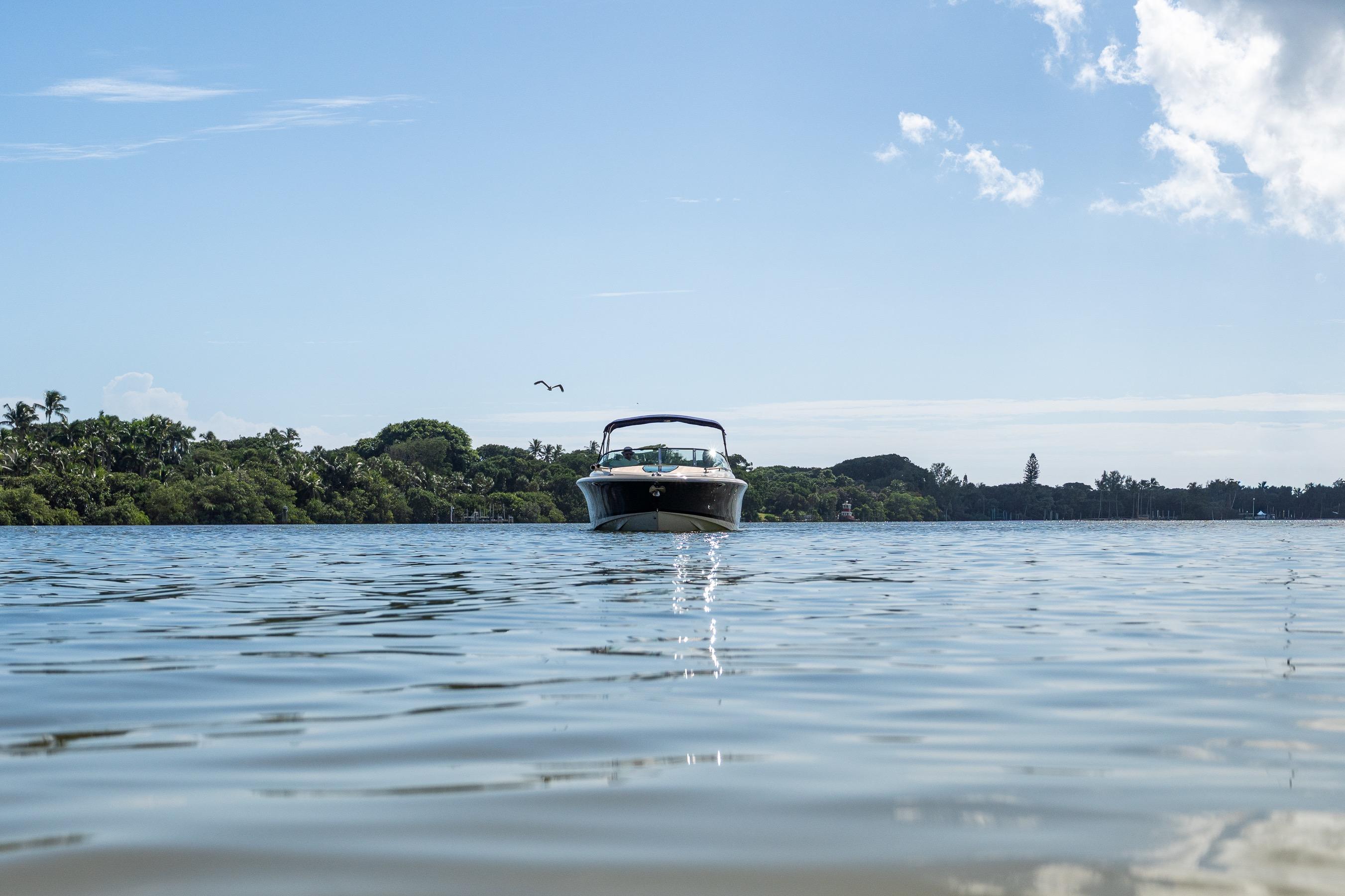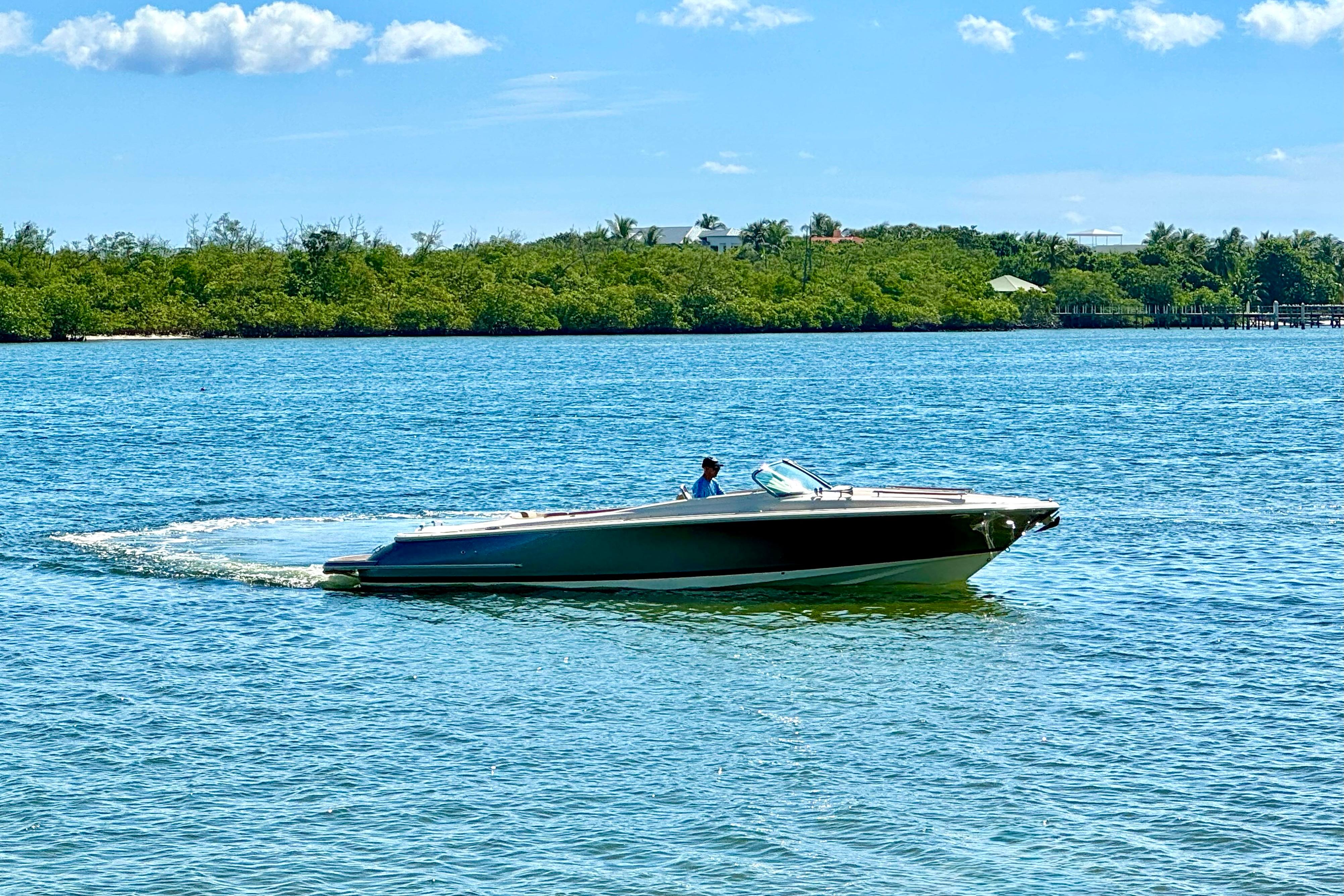 A modern classic. The Corsair 28 blends Chris-Craft’s mahogany-era lines with contemporary build quality and a ride that inspires confidence. The signature tumblehome stern, teak Heritage Package, and stainless hardware turn heads at every dock; the deep-V hull and flared bow deliver a dry, composed run when the chop picks up. It’s the rare dayboat that feels equal parts elegant cruiser and athletic runabout.