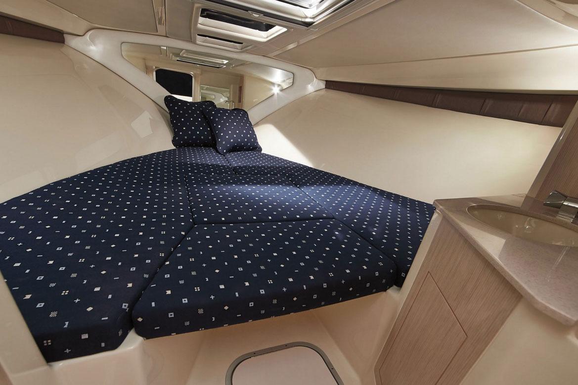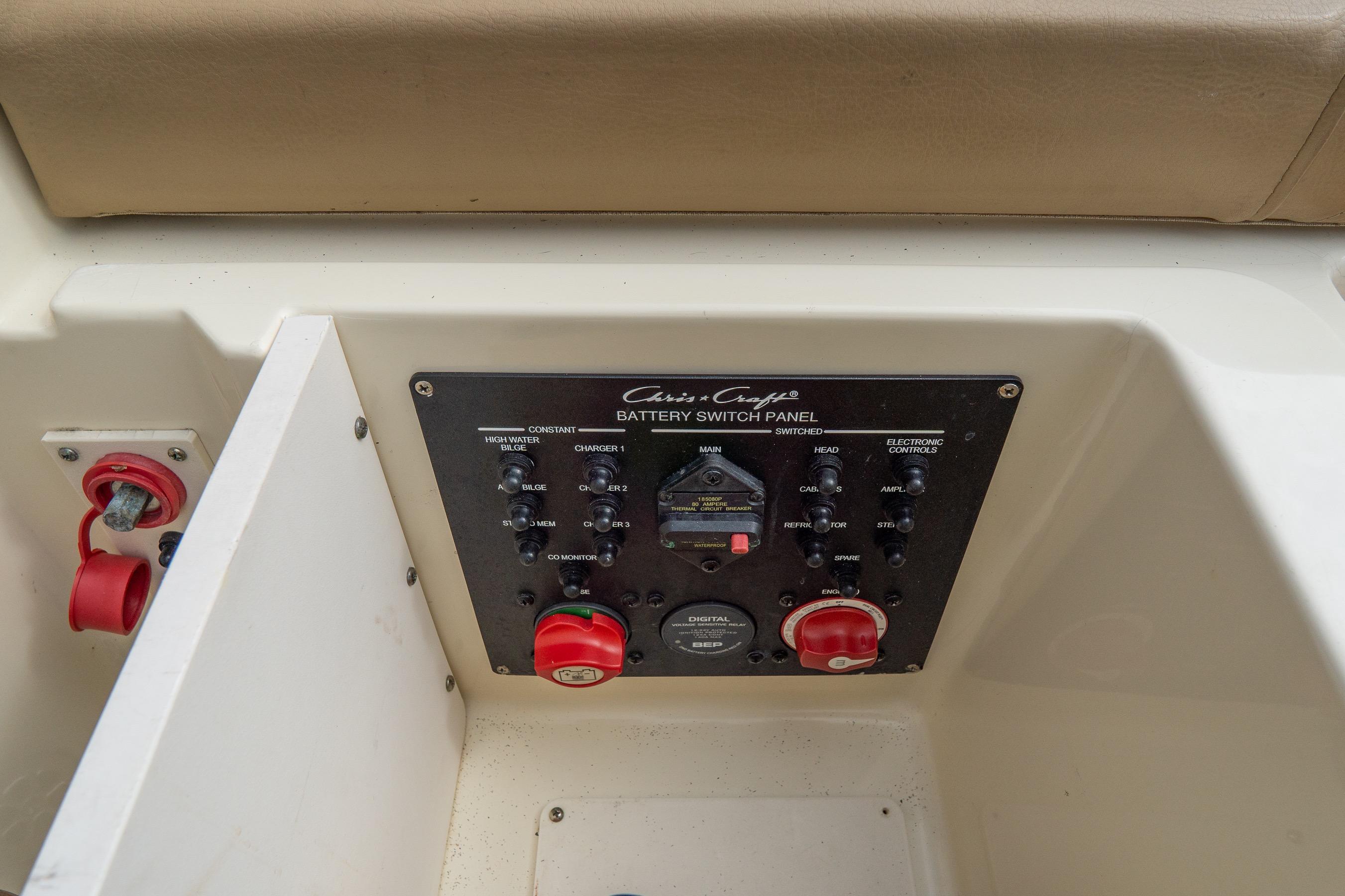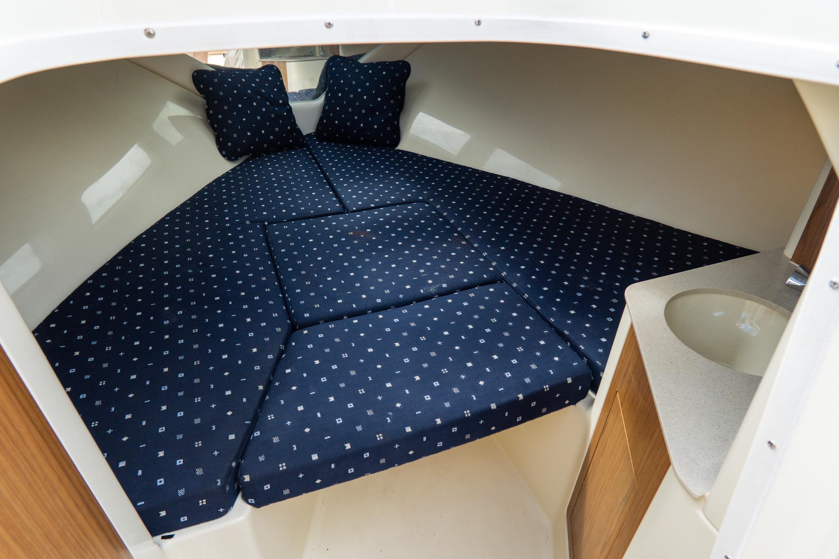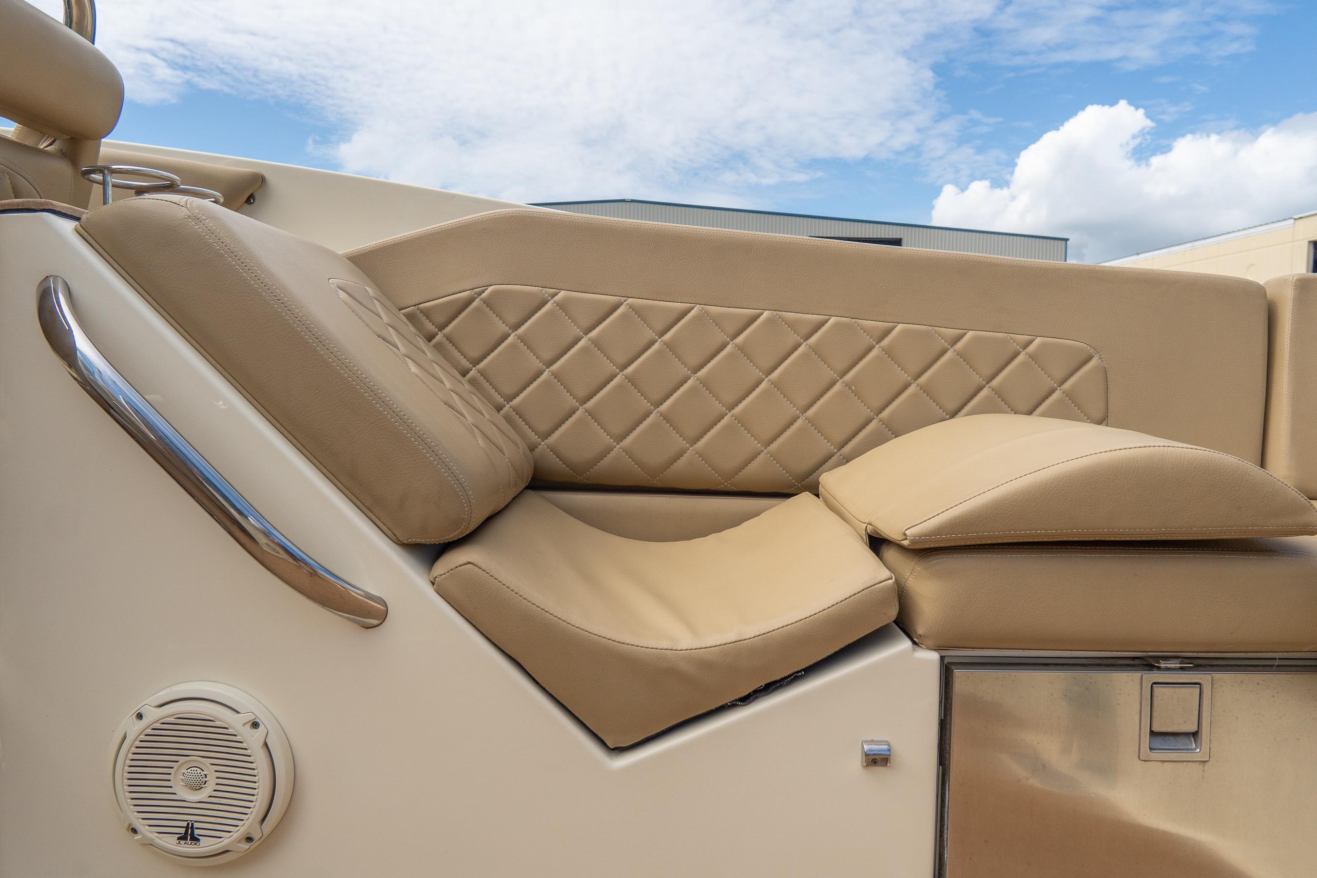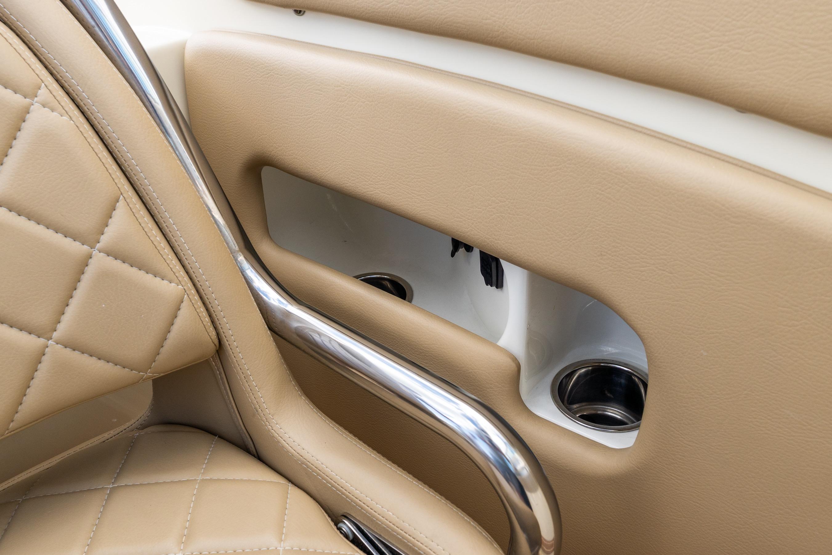 Step aboard and you’ll find an inviting, social cockpit with wraparound lounge seating, a double-wide helm seat to share the view, and a sun-pad over the engine hatch—an effortless setup for sandbar days, harbor tours, or twilight cruises. Fit and finish are unmistakably Chris-Craft: hand-finished teak, diamond-stitched upholstery, and robust hardware throughout. A compact cuddy forward with marine head and berth/storage adds real utility for quick changes, kids’ naps, or stowing gear.
