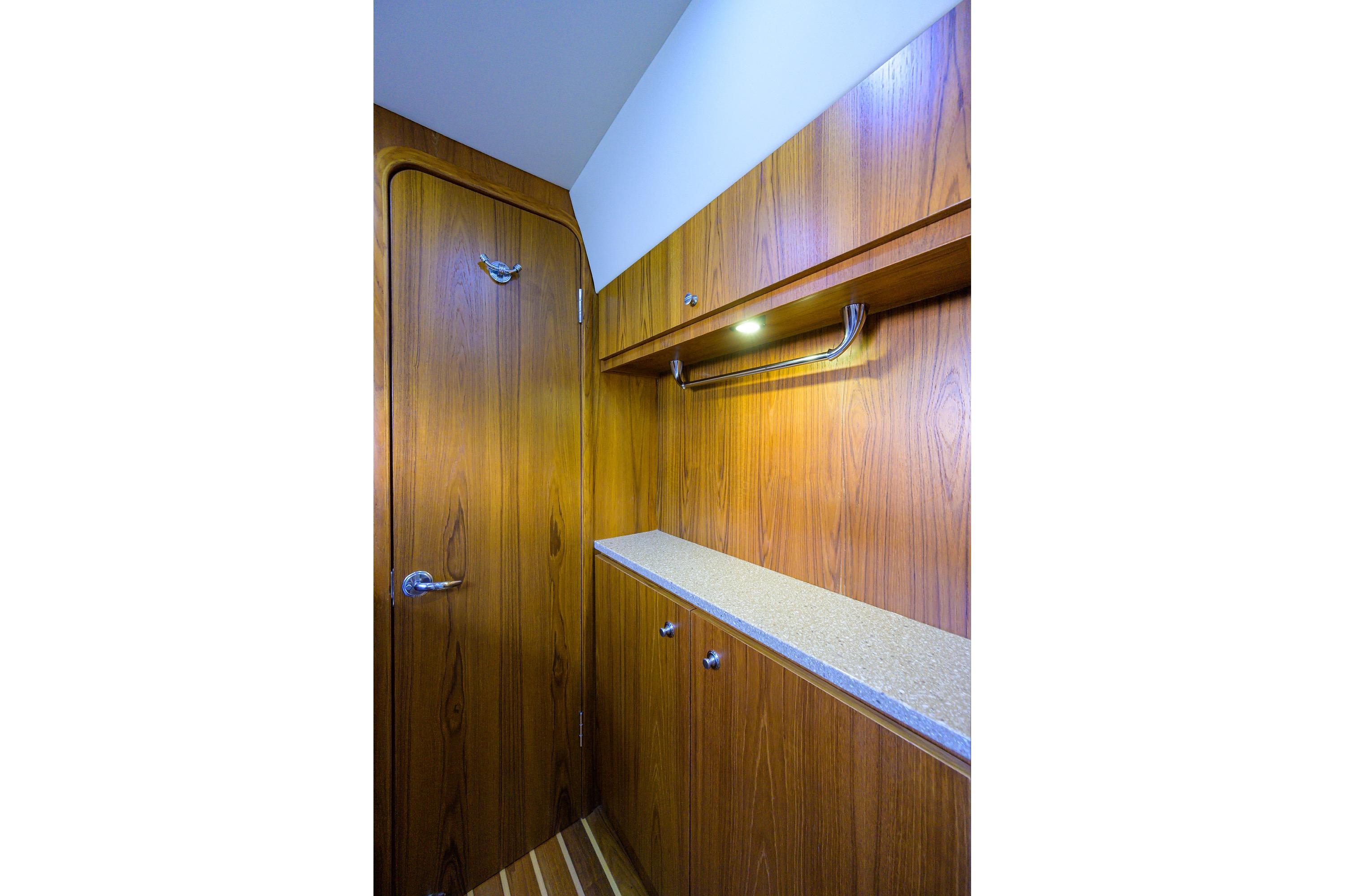 The forward cabin comes with a queen size bed on the centerline with good storage in a locker below the bed and hanging lockers and drawers.