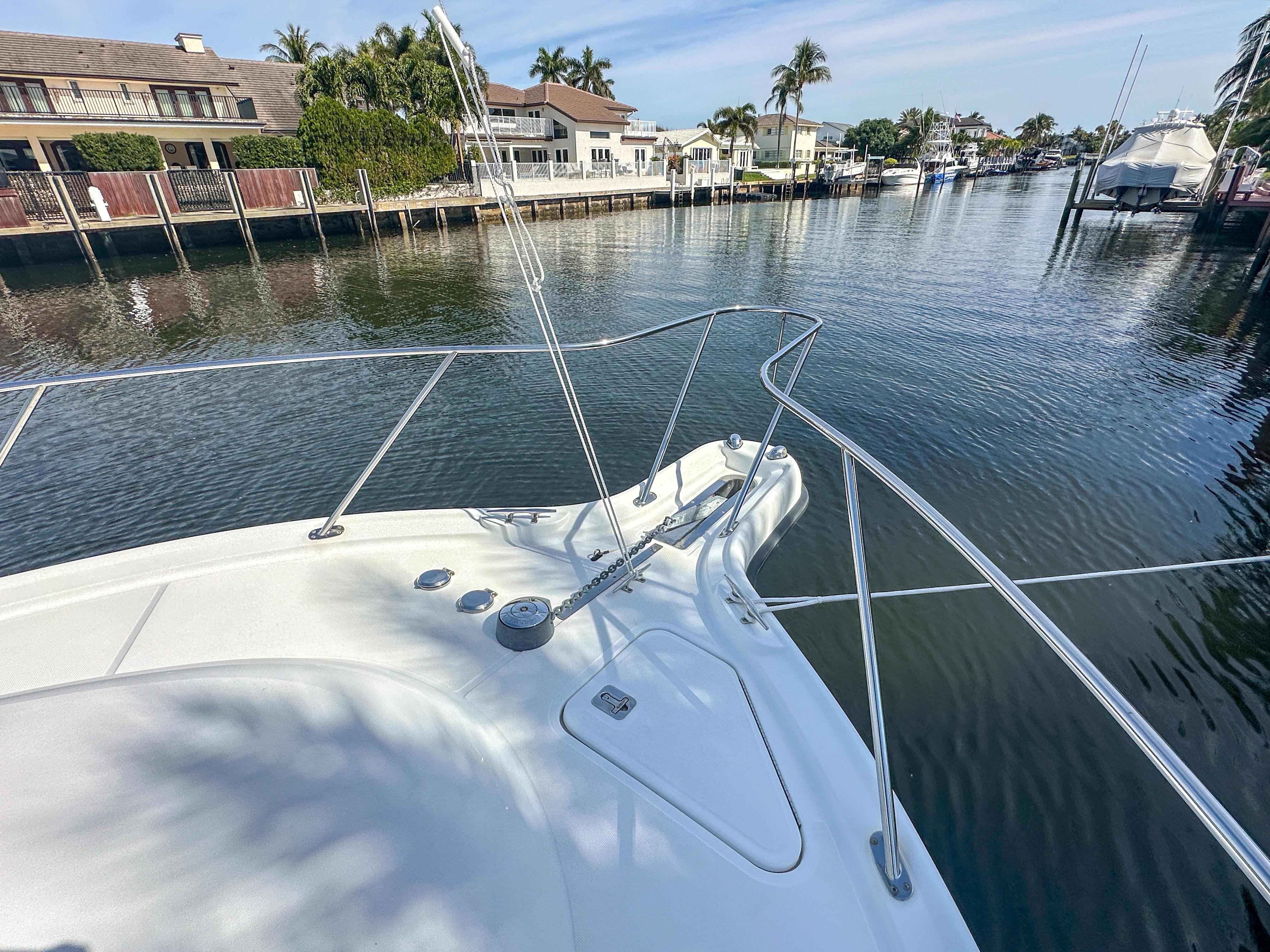 With an overall length of 35.08 feet, this vessel is designed for both comfort and adventure on the water. The modified Vee hull, crafted from durable fiberglass, ensures a smooth and stable ride, making it perfect for cruising with friends and family. Powered by twin Cummins QSB 5.9 inboard engines, each delivering an impressive 355 horsepower, this boat promises exhilarating performance with a total of 710 horsepower.