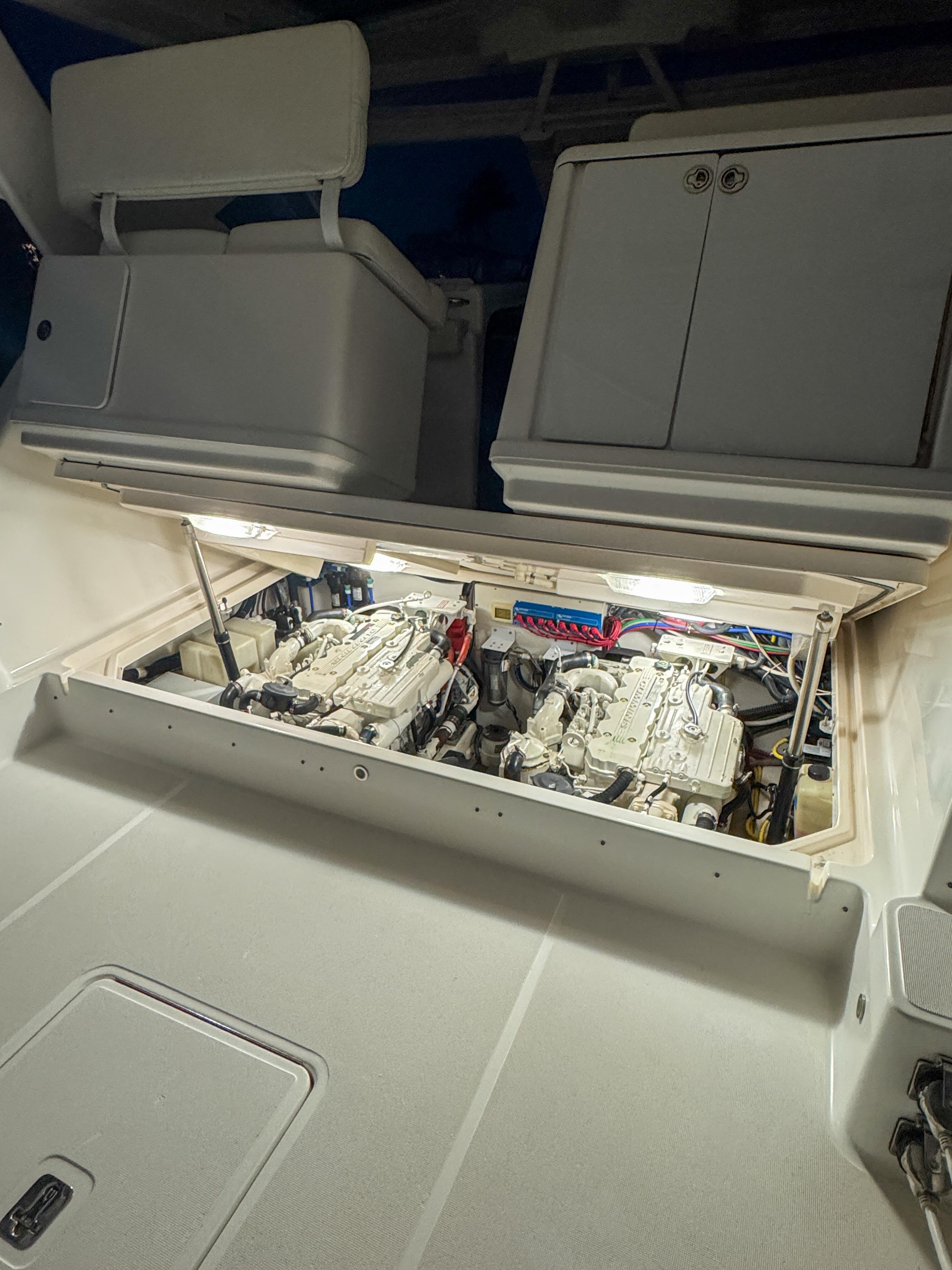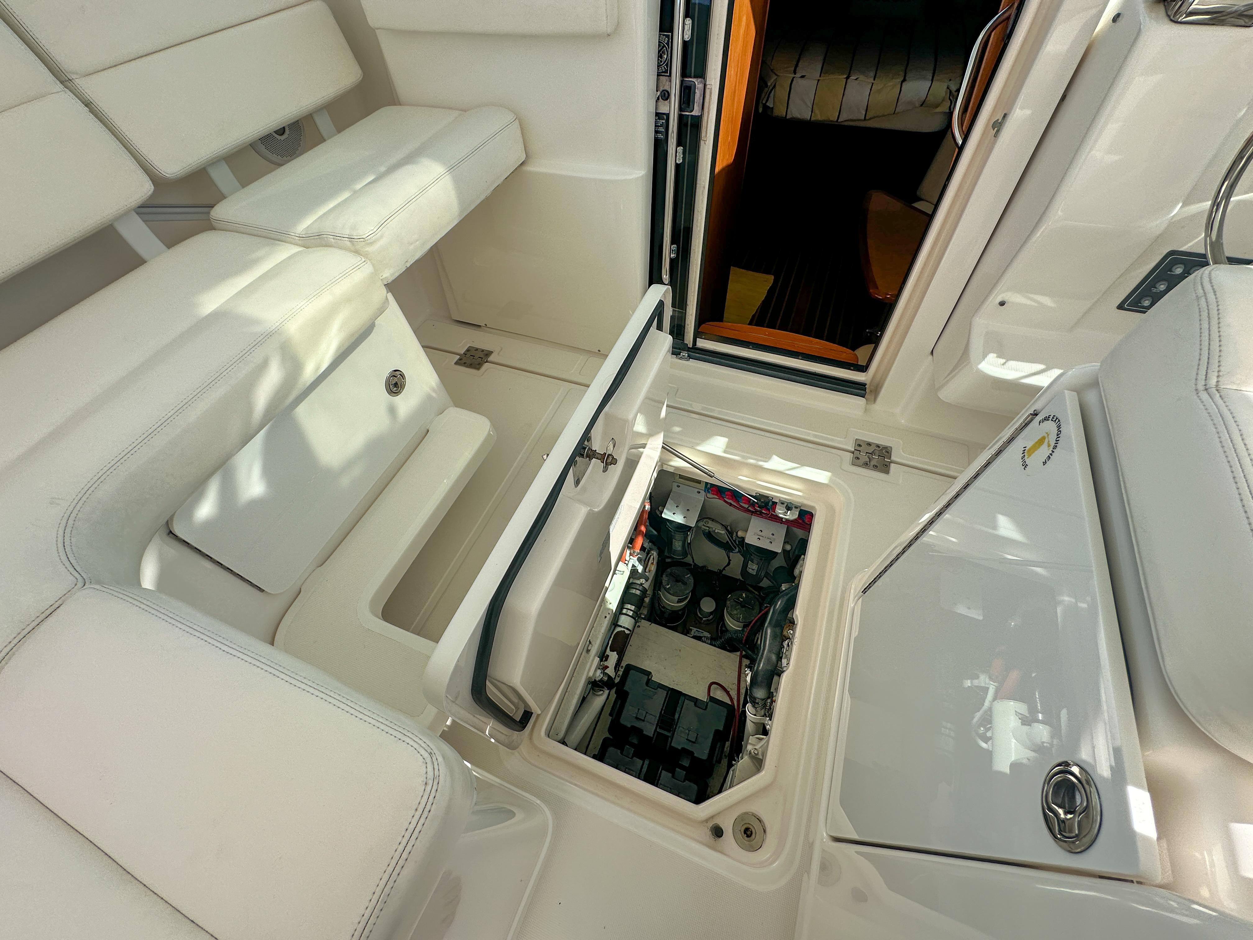 With only 473 hours of use (1k "key on" hours), these engines are ready for many more journeys. Accommodating up to 10 passengers, the 3200 Open is ideal for entertaining or relaxing on the water. The inclusion of a head and optimal storage throughout the entire vessel adds convenience for longer outings. This well-maintained cruiser is perfect for those seeking both luxury and functionality in their boating experience.