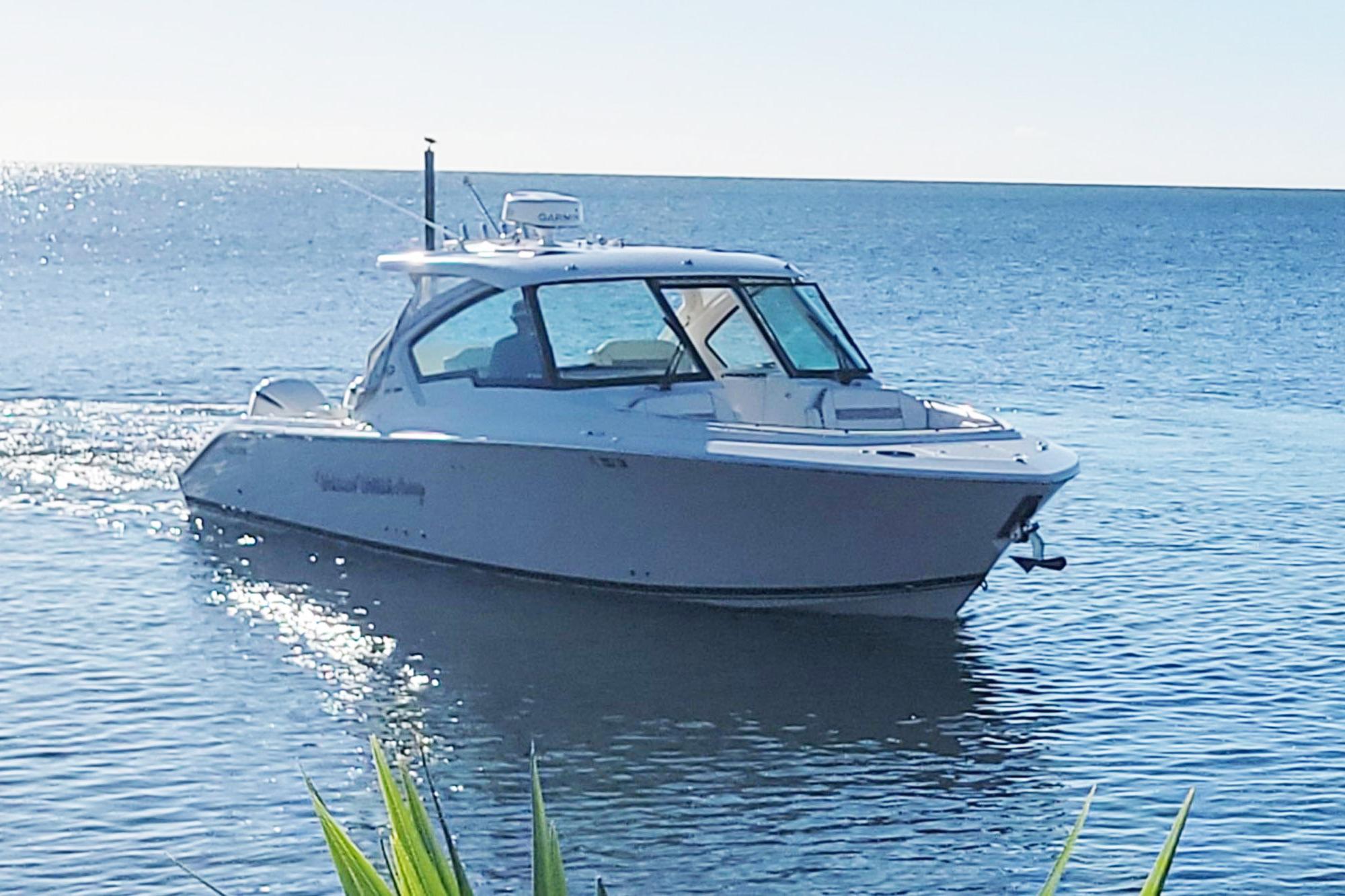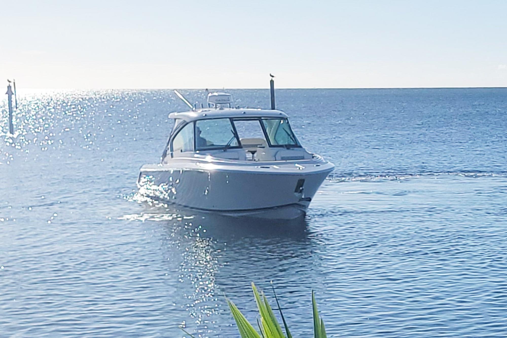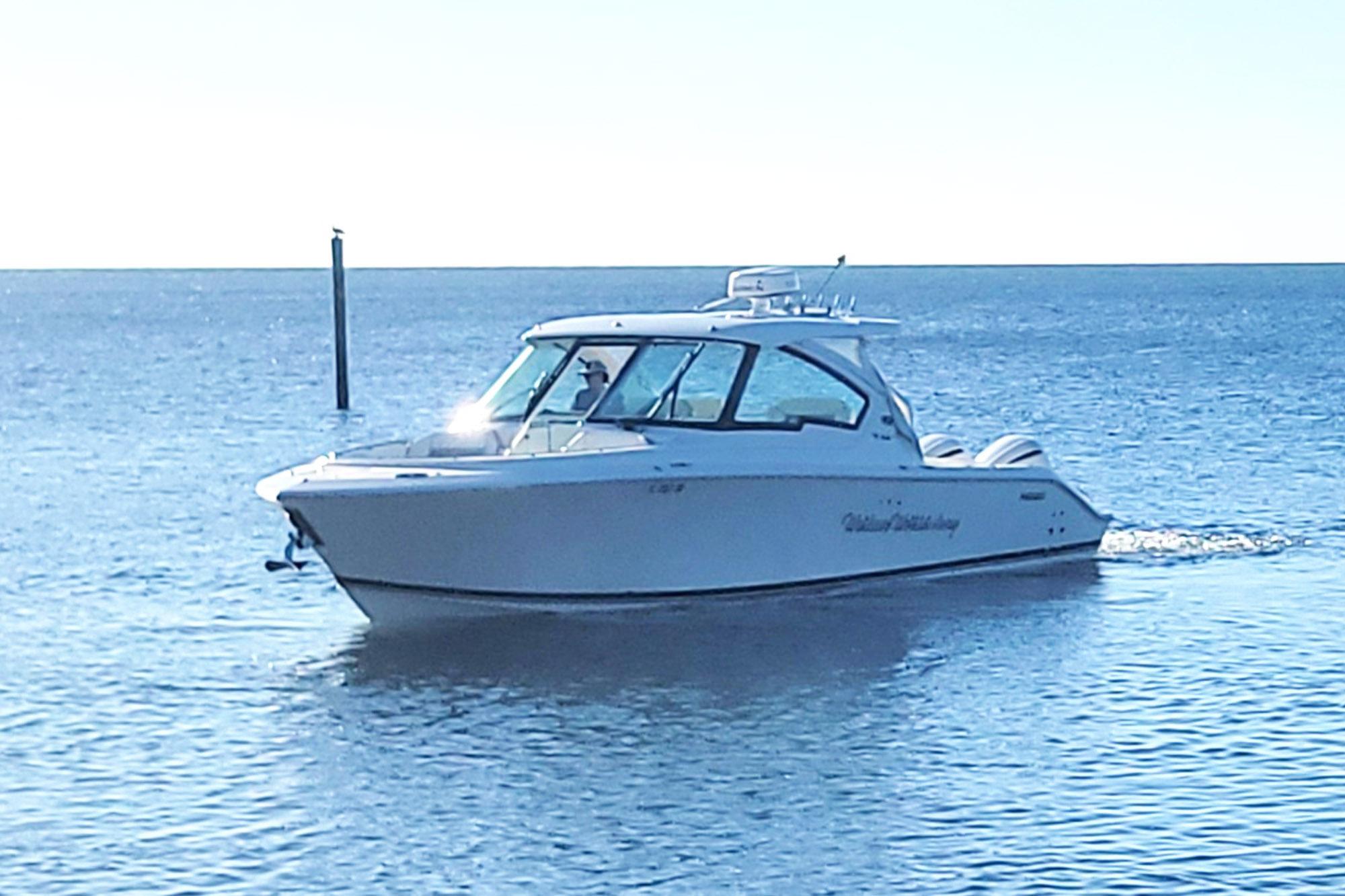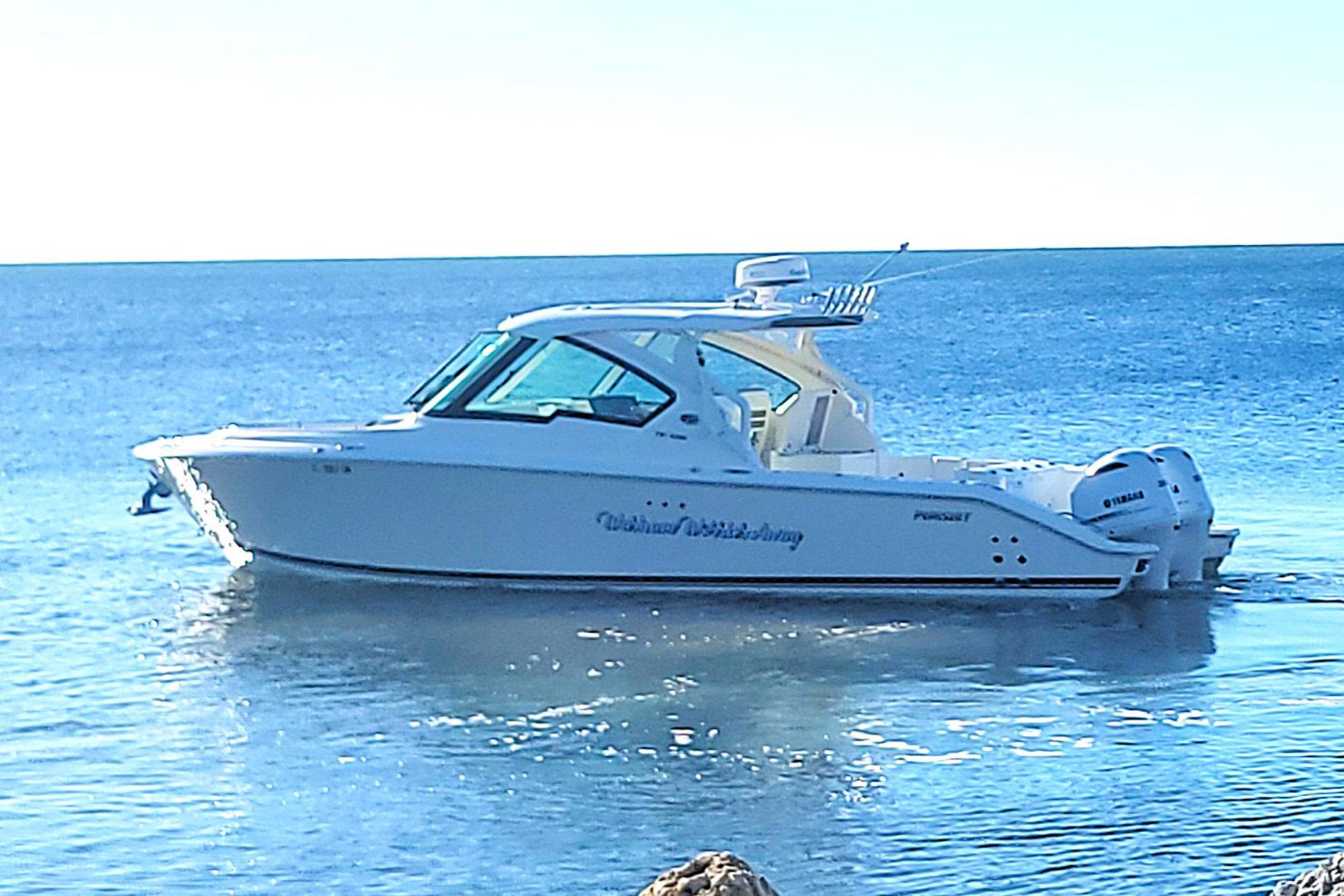 This very well kept 326DC Pursuit is fully loaded and ready to go. Her sleek lines and legendary quality of build stands tall. The owners didn’t cut any corners when they ordered this boat. From Helm and Cabin A/C to her Generator the creature comforts are there. Cruising or fishing is safe and easy with her reliable 300hp Yamaha Engines to her simple to use Garmin Electronics package. Seating is very nice and is everywhere you look. There is a fully retractable sun shade that is push button operated. Her cabin is a good place to hide from any sudden weather. Her head is well equipped and roomy. Finally she has a cockpit fridge and built in grill for enjoying your day on the water.