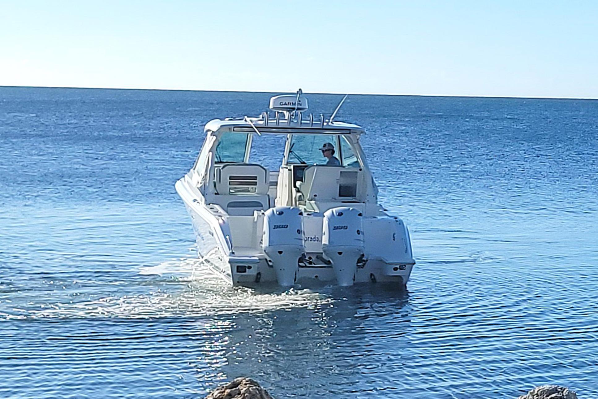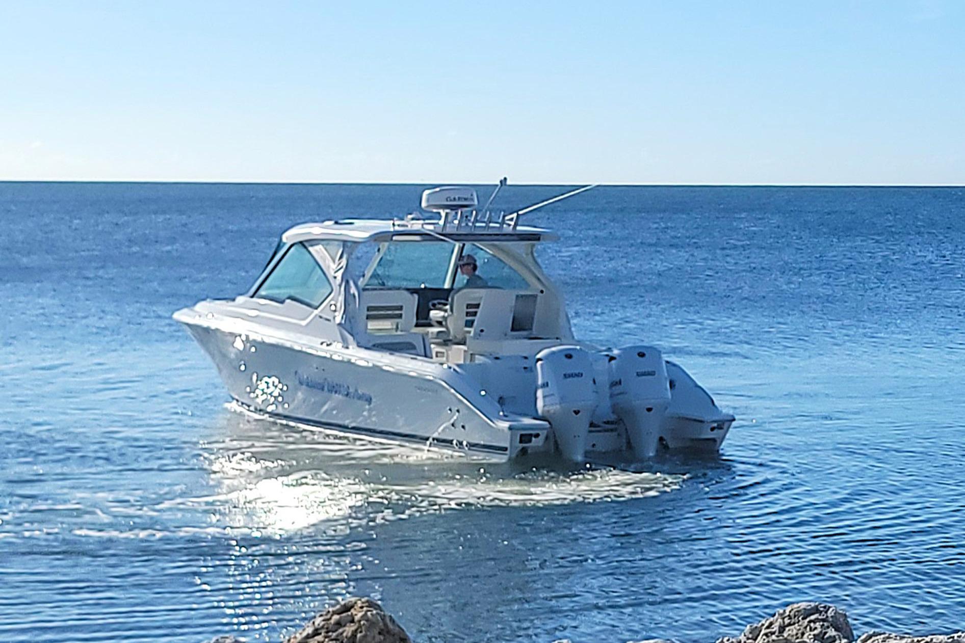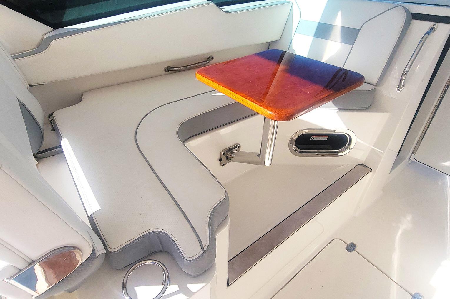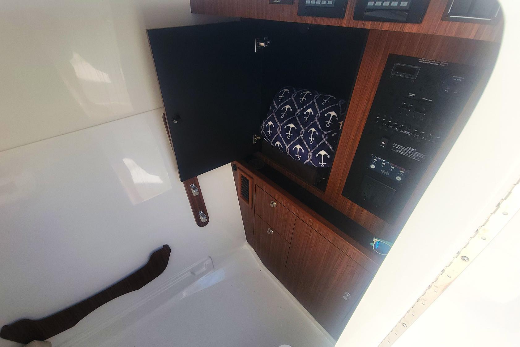 This very well kept 326DC Pursuit is fully loaded and ready to go. Her sleek lines and legendary quality of build stands tall. The owners didn’t cut any corners when they ordered this boat. From Helm and Cabin A/C to her Generator the creature comforts are there. Cruising or fishing is safe and easy with her reliable 300hp Yamaha Engines to her simple to use Garmin Electronics package. Seating is very nice and is everywhere you look. There is a fully retractable sun shade that is push button operated. Her cabin is a good place to hide from any sudden weather. Her head is well equipped and roomy. Finally she has a cockpit fridge and built in grill for enjoying your day on the water.