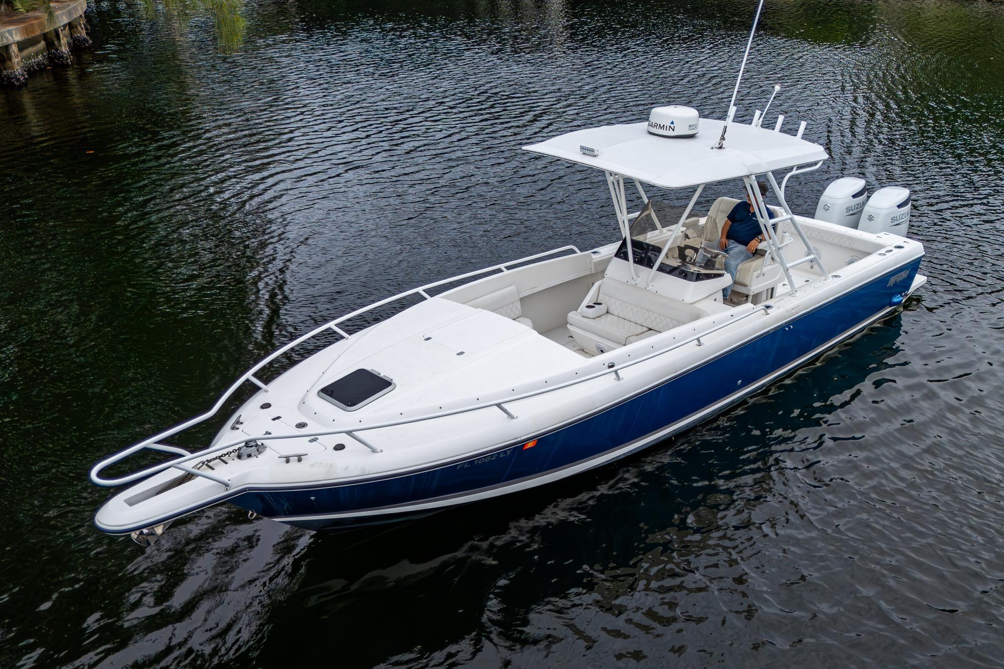 Welcome aboard this meticulously maintained Intrepid 322 Cuddy Cabin on the market. With upgrades from bow to stern, this 2003 model shows like she was just brought straight off the showroom floor. A deep Vee fiberglass hull powered by twin 300 HP 4-stroke Suzuki outboards provides a strong platform for whatever your plans may have in store. From offshore fishing to overnight stays in the islands, the cuddy cabin offers a fresh water head and bunks to get a good nights rest and provide all the necessary creature comforts.