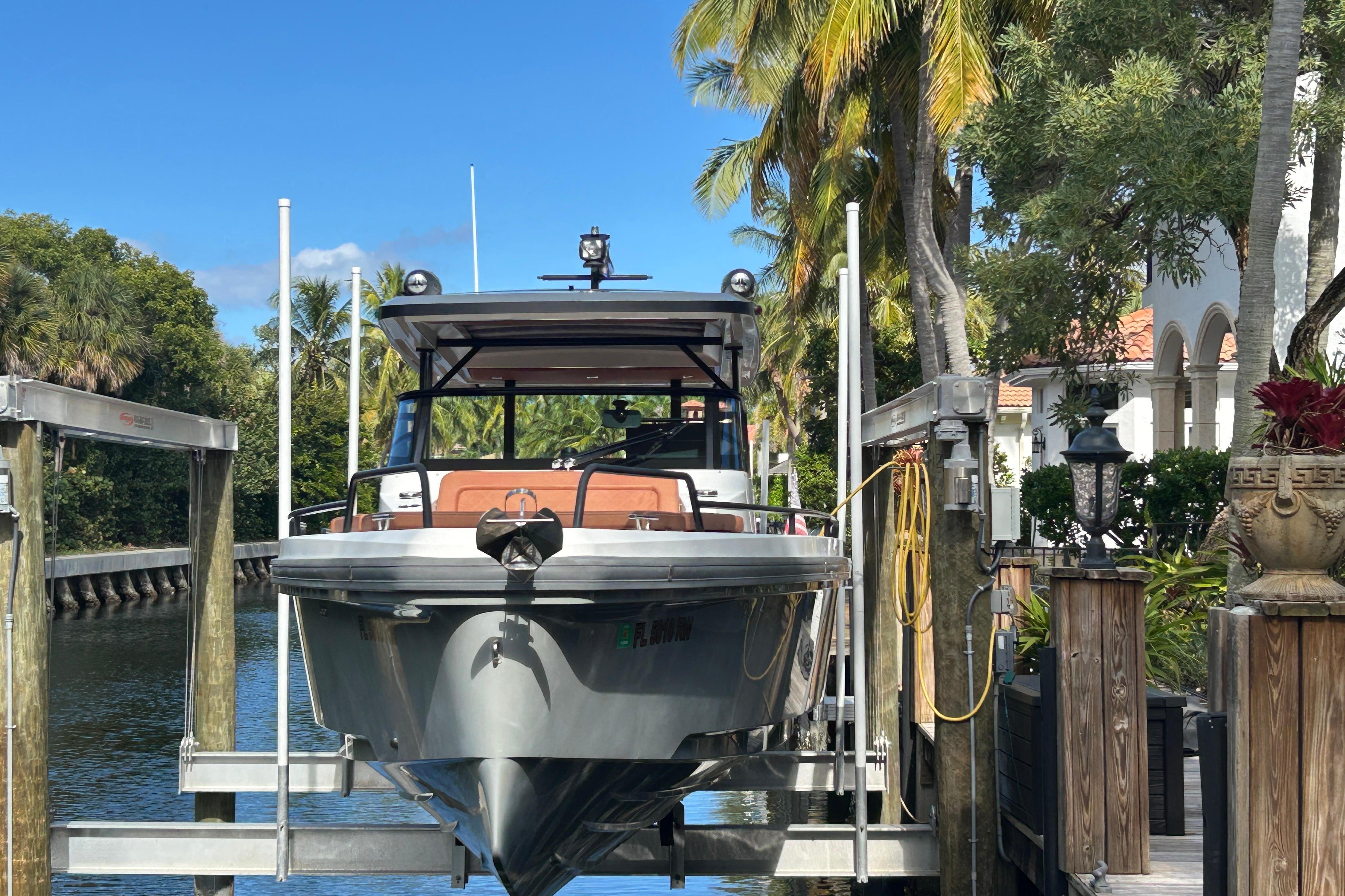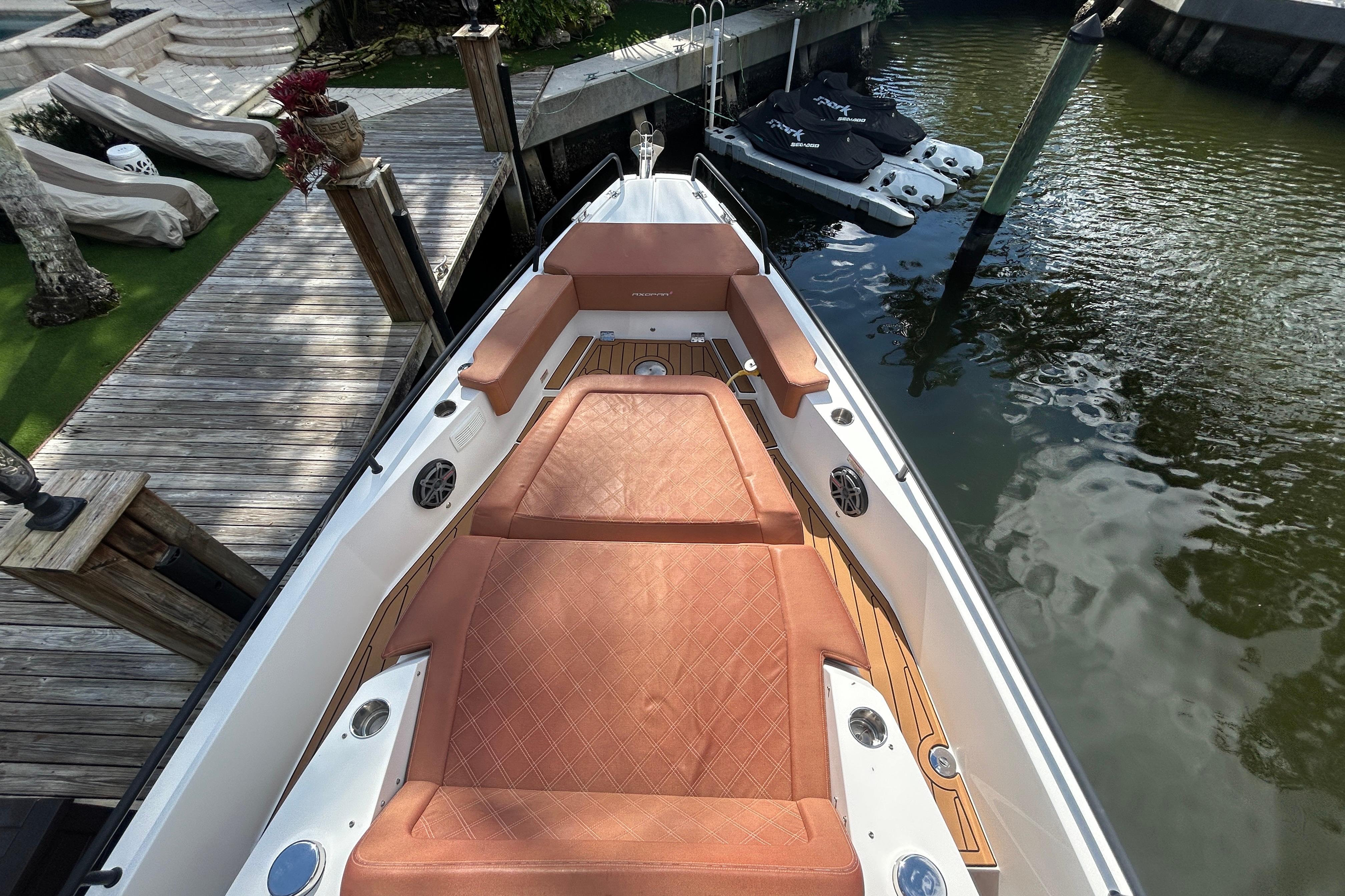 Come see this well maintained BRABUS trim 2018 Axopar 37 Sun Top. The 37 Axopar is the best all around boat for your money hands down. With a cruise of 32kts and an innovative bow, you will get where you need to go fast and comfortably. This speed and comfort is ideal for short cruises or long trips: go fish, dive, hang at the sandbar, have a formal spread on the teak cockpit table while cruising, or blast the fully upgraded JL Audio speakers while running at a 45kt top speed. This boat can do it all.