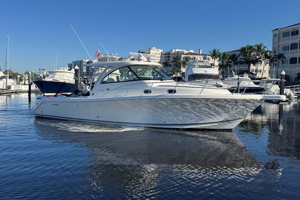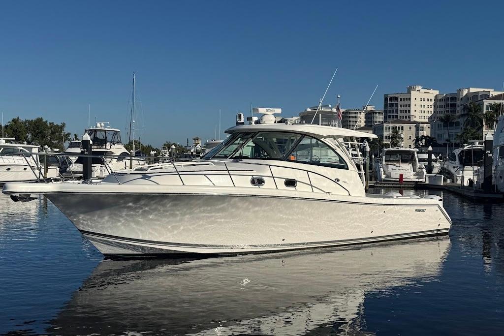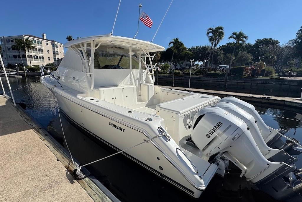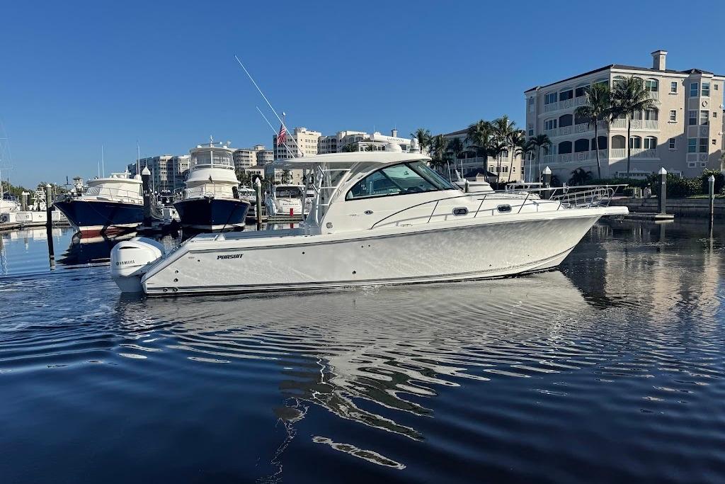 2021 385 Pursuit Offshore powered by triple 300hp Yamahas with very low hours (under 300) and well maintained.