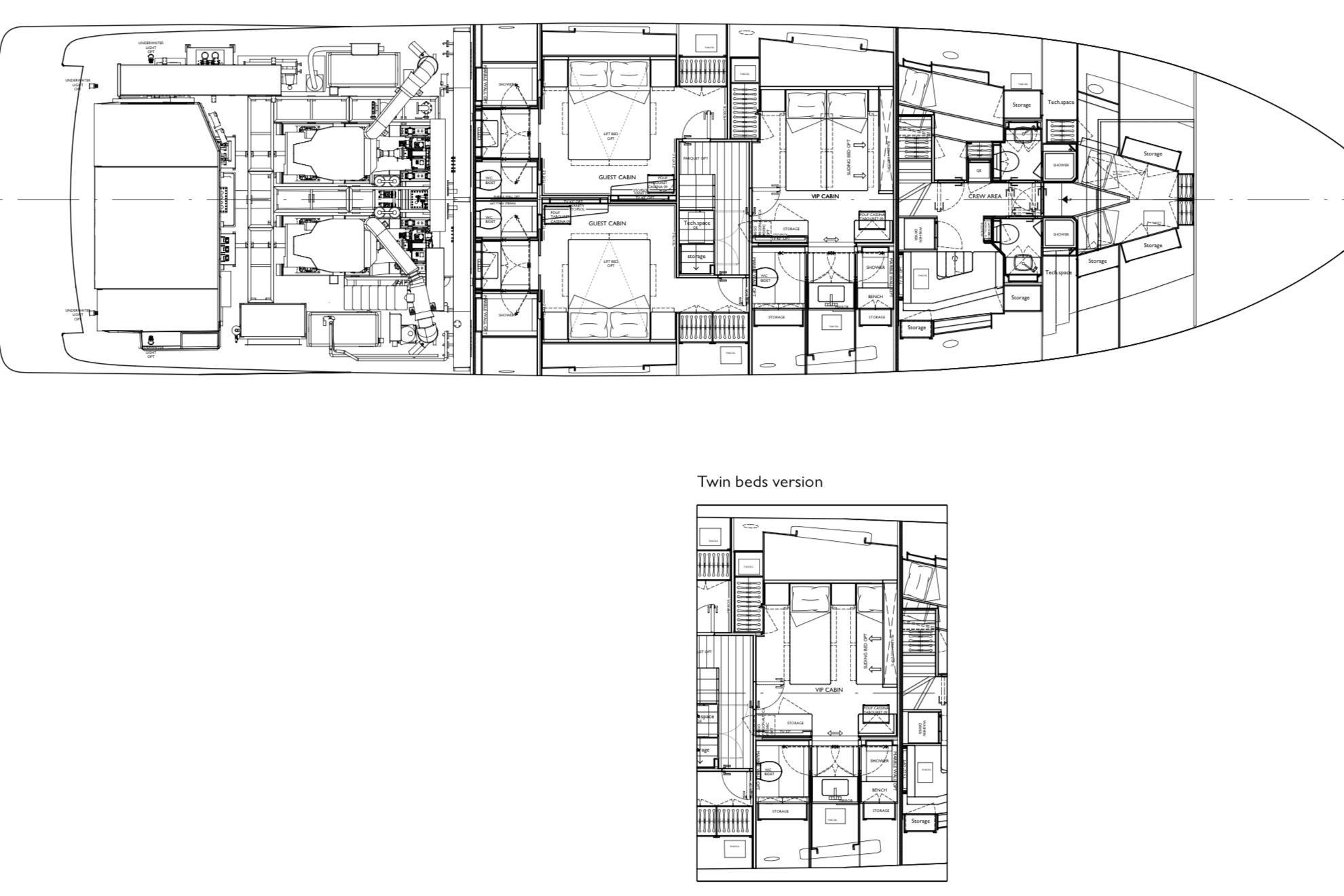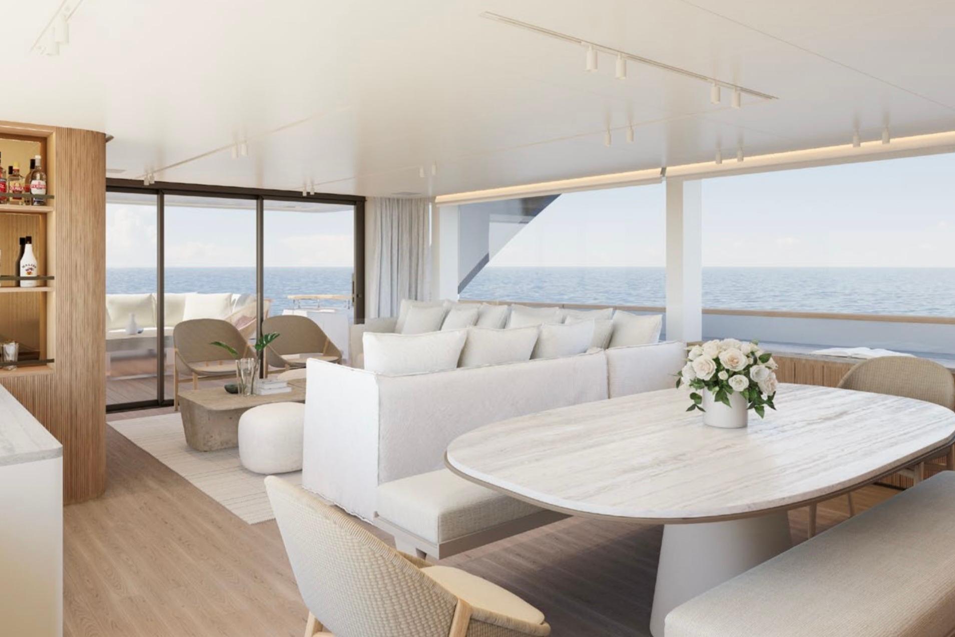 With its bold vertical bow, sculpted superstructure, and expansive glazing throughout, the SD90 strikes a perfect balance between elegance and capability. The yacht features a multi-level beach area, a bright open salon with panoramic windows, and a flexible interior layout crafted by world-renowned designers for maximum comfort.