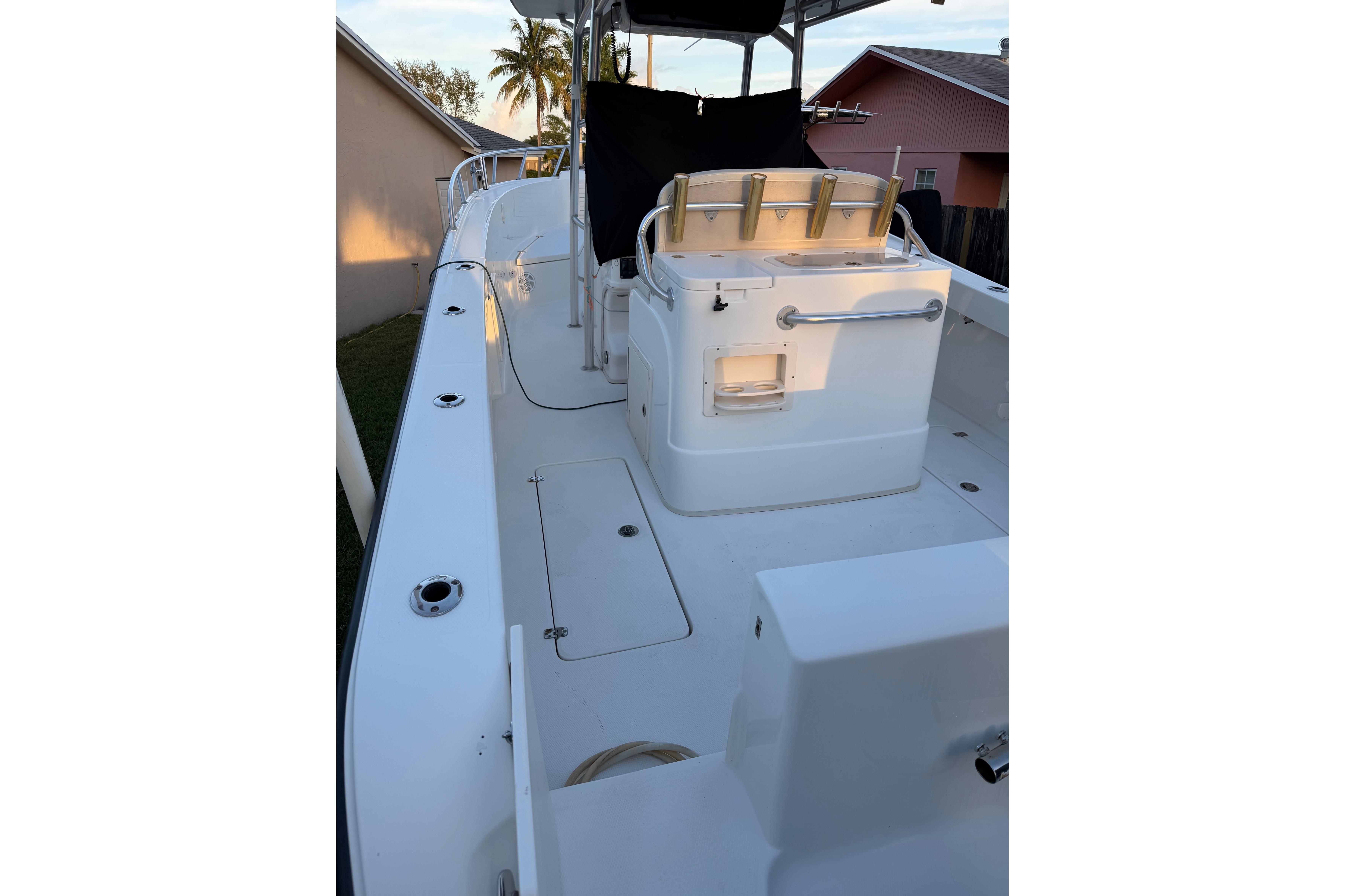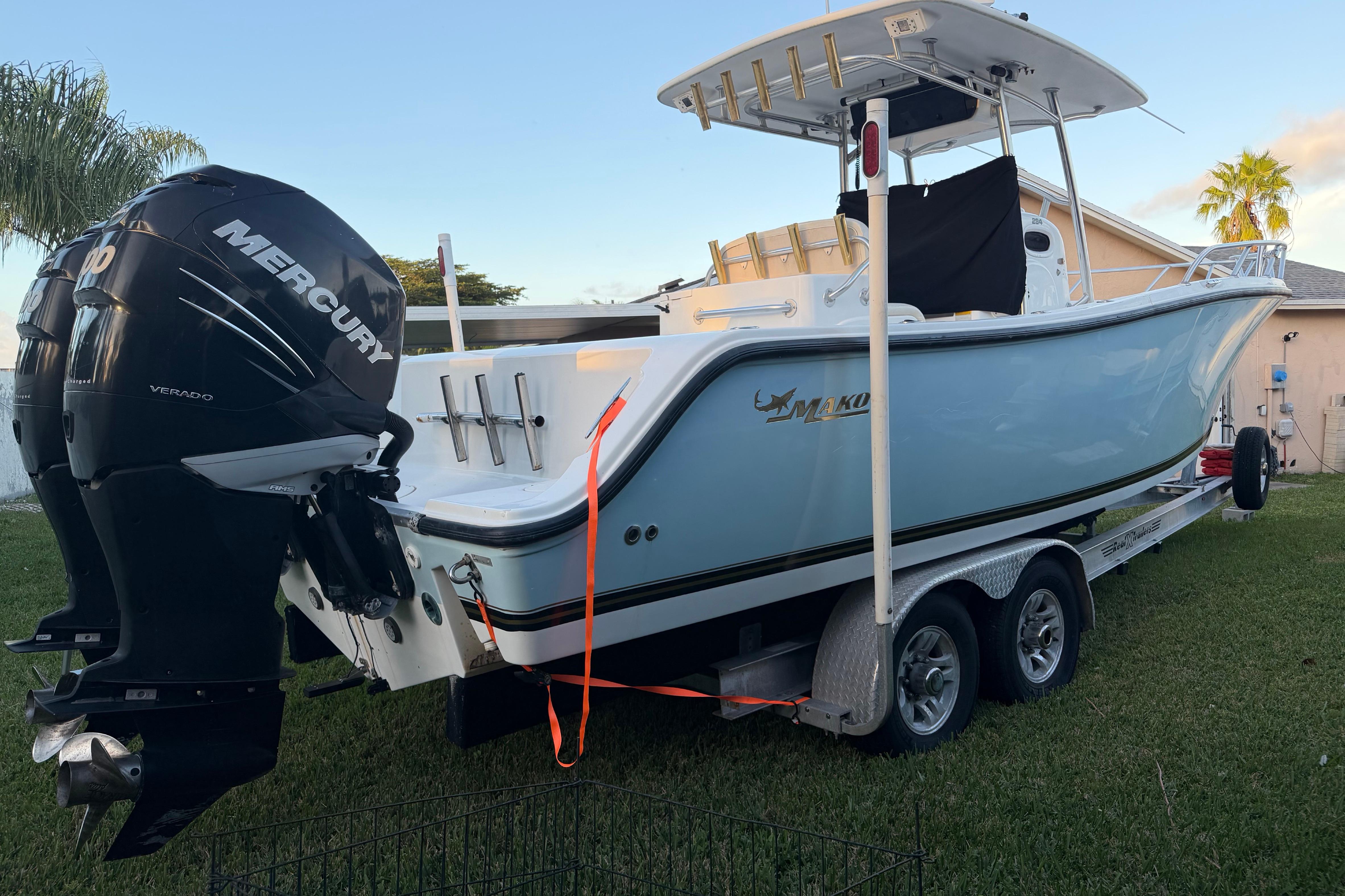 ~ The MAKO 284 CC is one of the toughest open-ocean fishing platforms ever offered. Serious offshore anglers demand top-of-the-line performance, and this rugged, uncompromising rig more than measures up—while delivering a soft ride that continues to impress. The 284 center console offers every fishing feature deep-water enthusiasts could want. Its canvas T-top carries five rod holders. The baitstation, with tackle storage and sink, adds another four. And rods can be stowed away under the gunwales, too. An optional custom-matched EZ Loader aluminum trailer with oil bath hubs and sealed-circuit LED lights is also available.