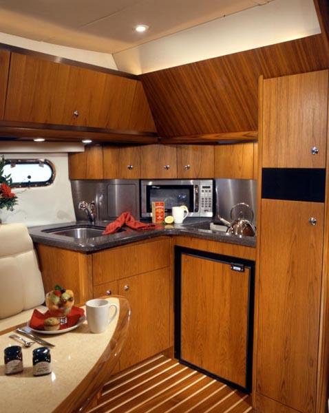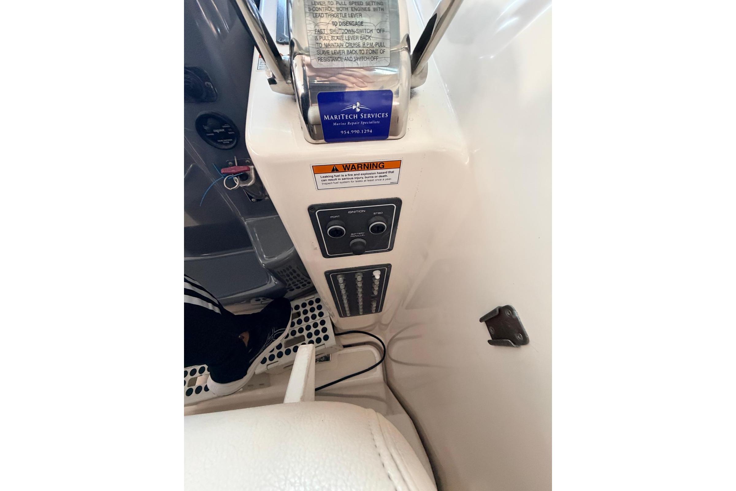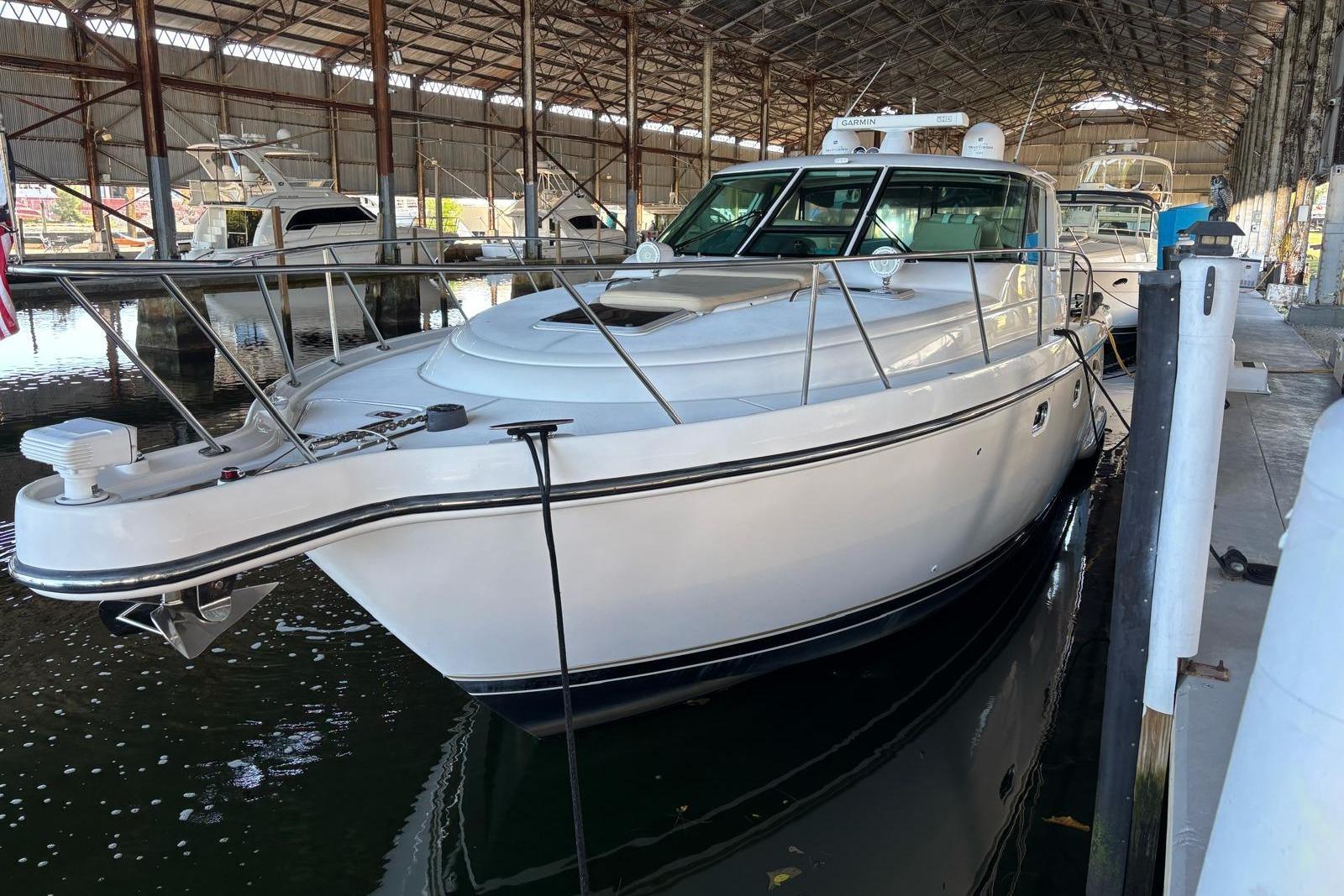 The Sovran 3600 brings with her everything that is Tiara Yachts including solid, dependable hull design, flawless gel coat finish, standard integrated composite windshield and hardtop, high-grade stainless steel hardware, and designed safety features that are built for the boater. With Tiara Yachts you know you'll have confidence in the quality and dependability that comes with decades of boat building experience. No more wrestling with canvas, the integrated composite windshield and hardtop design add unmatched cruising comfort and clear obstruction free views while sitting or standing. There is plenty of room for guests at the spacious companion L-lounge and the captain will sit comfortably at the custom adjustable helm seat. Below decks the Sovran 3600 displays the finest in custom cabinetry. The spacious interior provides plenty of elbowroom and all the comfort you need for those long weekends and extended trips. The forward master stateroom features a queen size pedestal berth with inner spring mattress, lots of storage and built-in flat panel television.