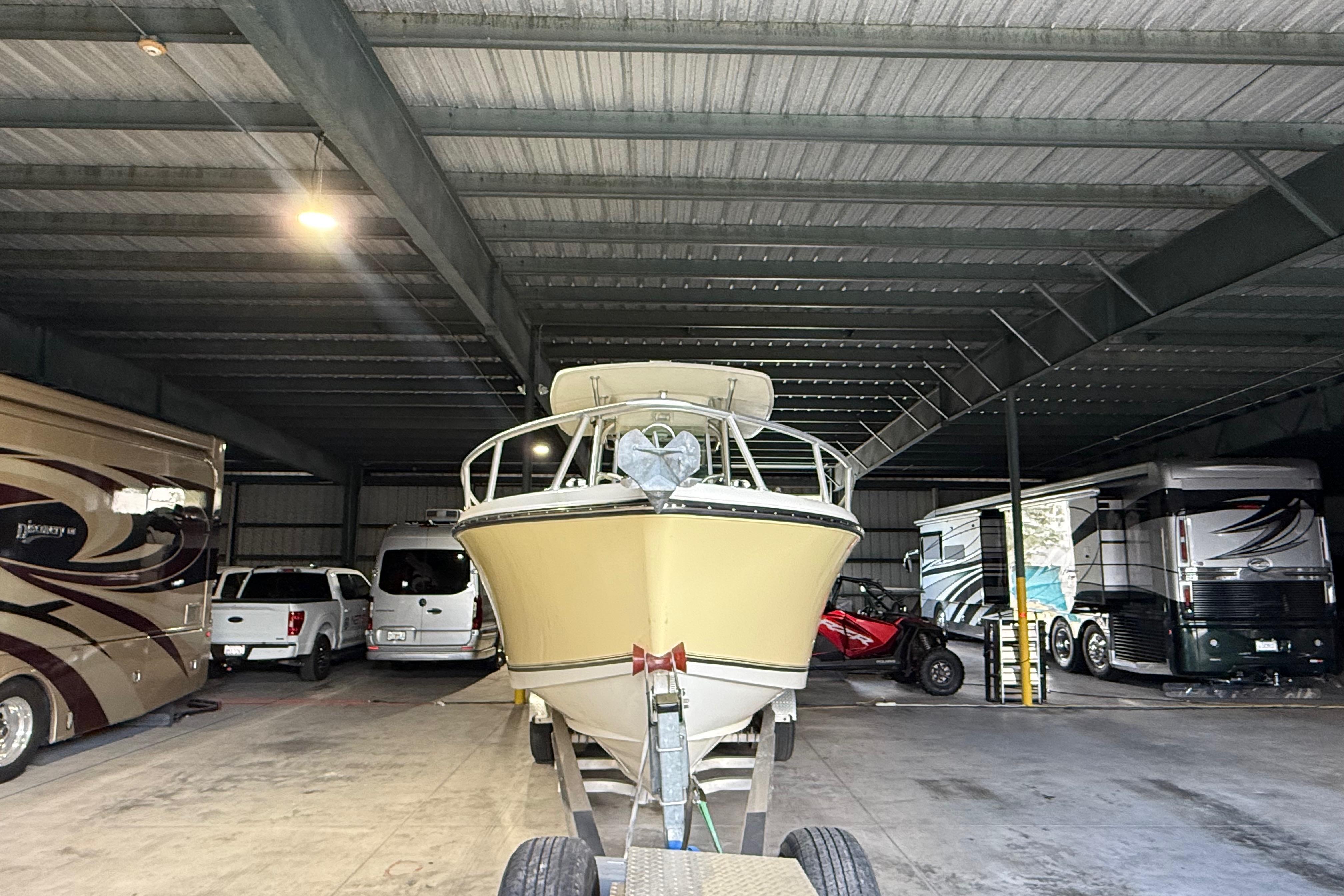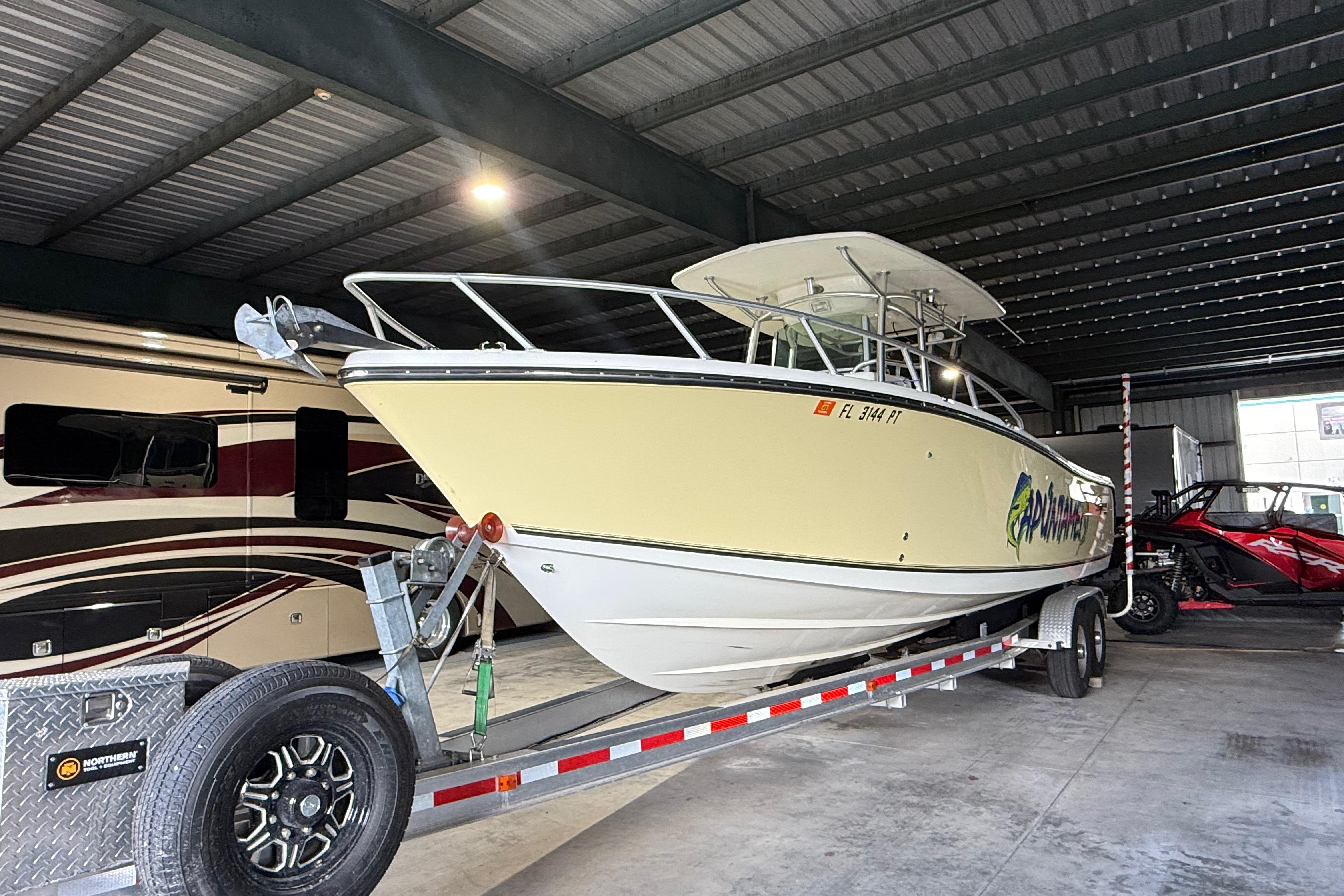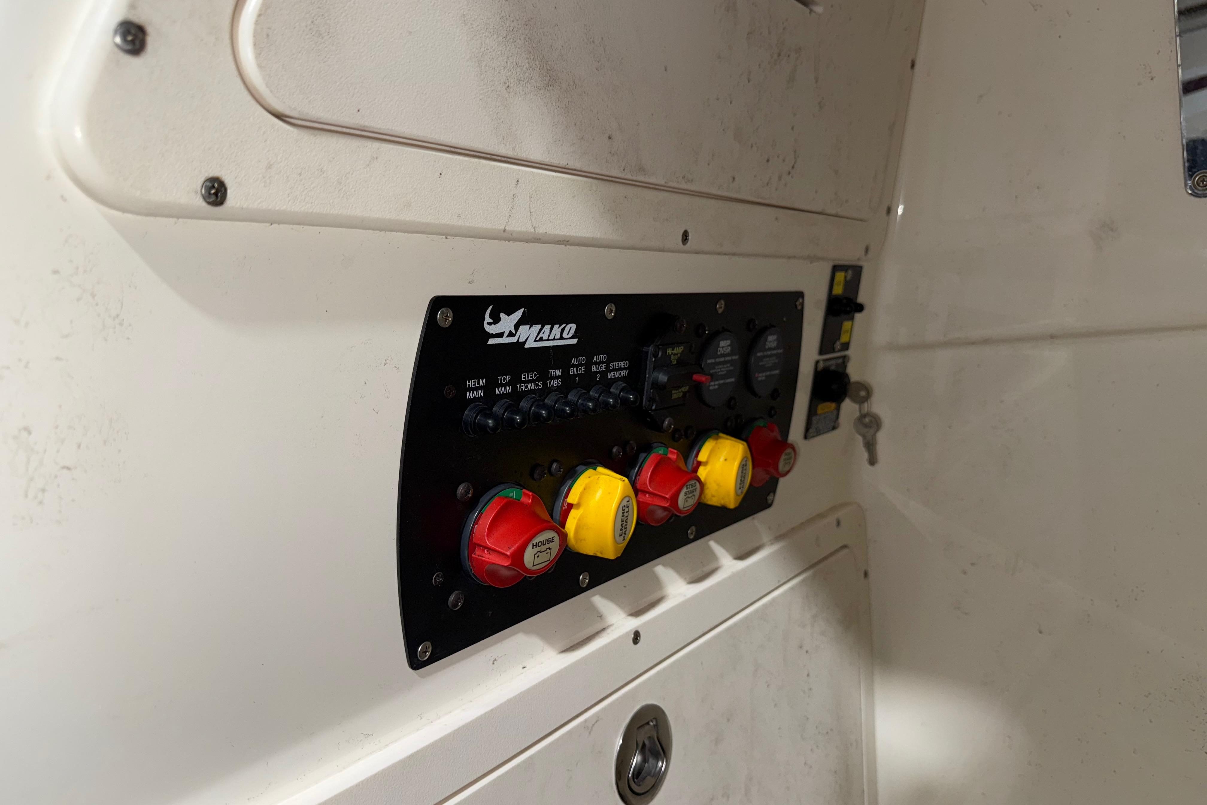- Center console helm w/fully lined head enclosure, digital gauges, oversized electronics mounting surface, recessed & covered electrical switches, glass windshield, grab rail & forward-console seat w/insulated & drained cooler