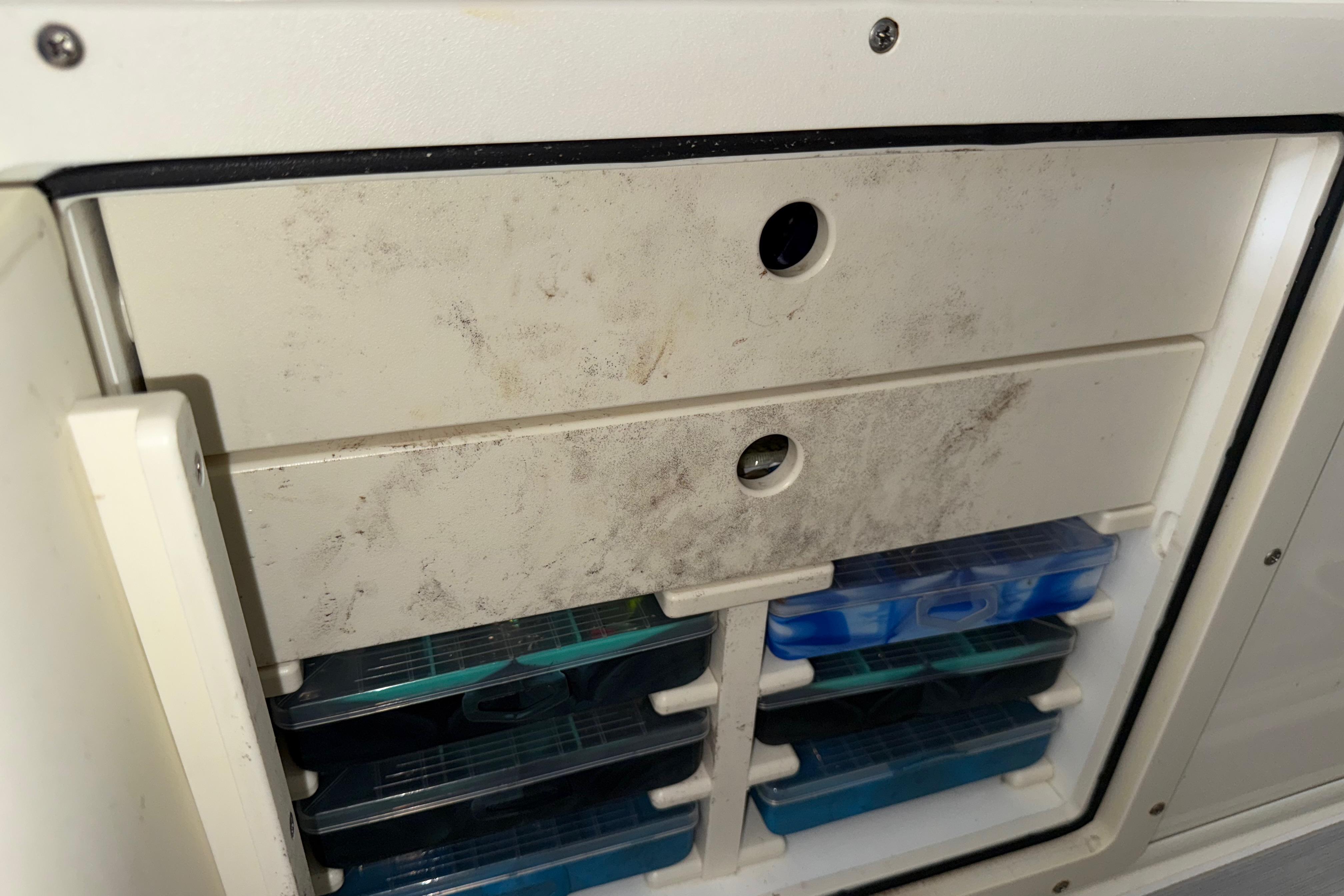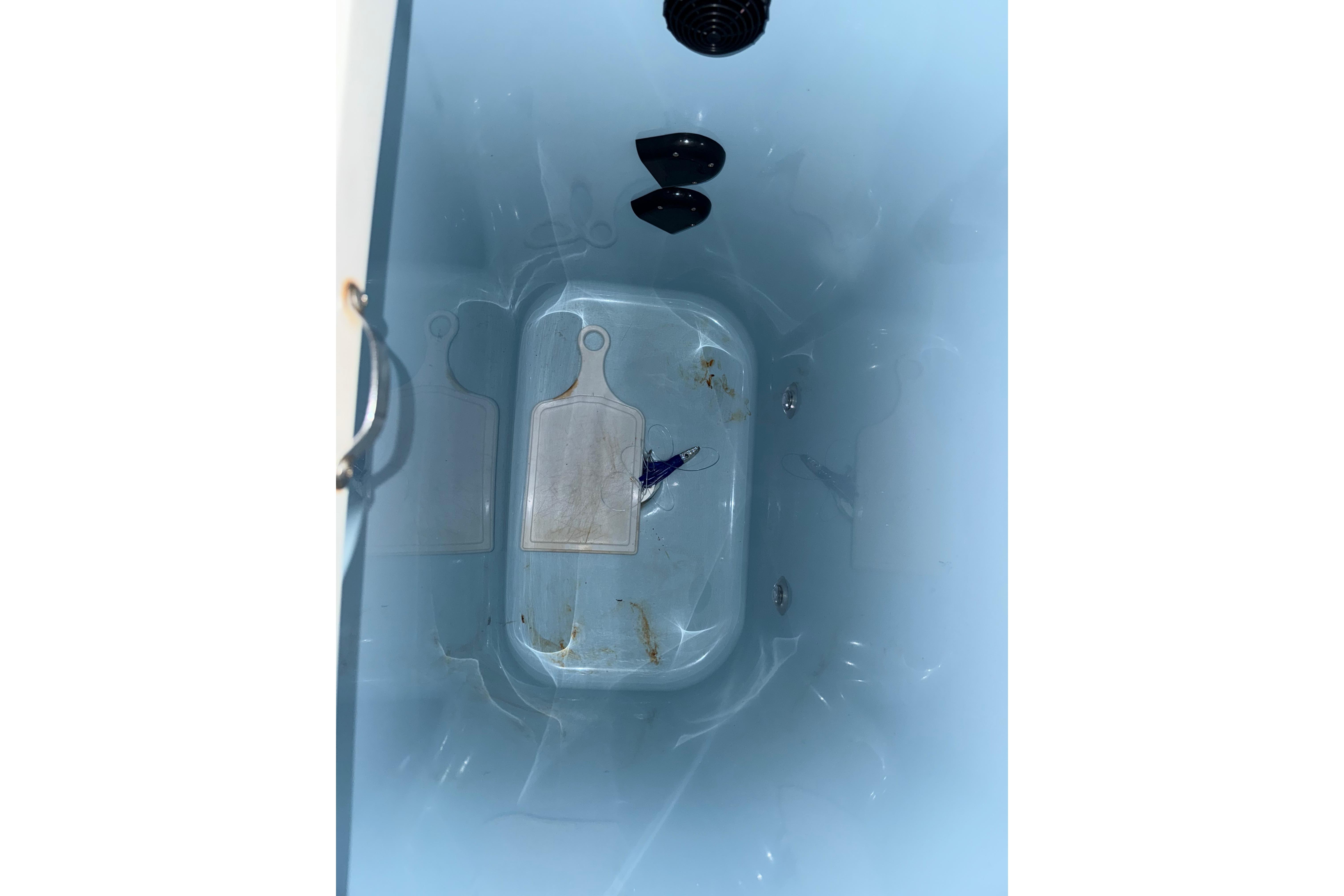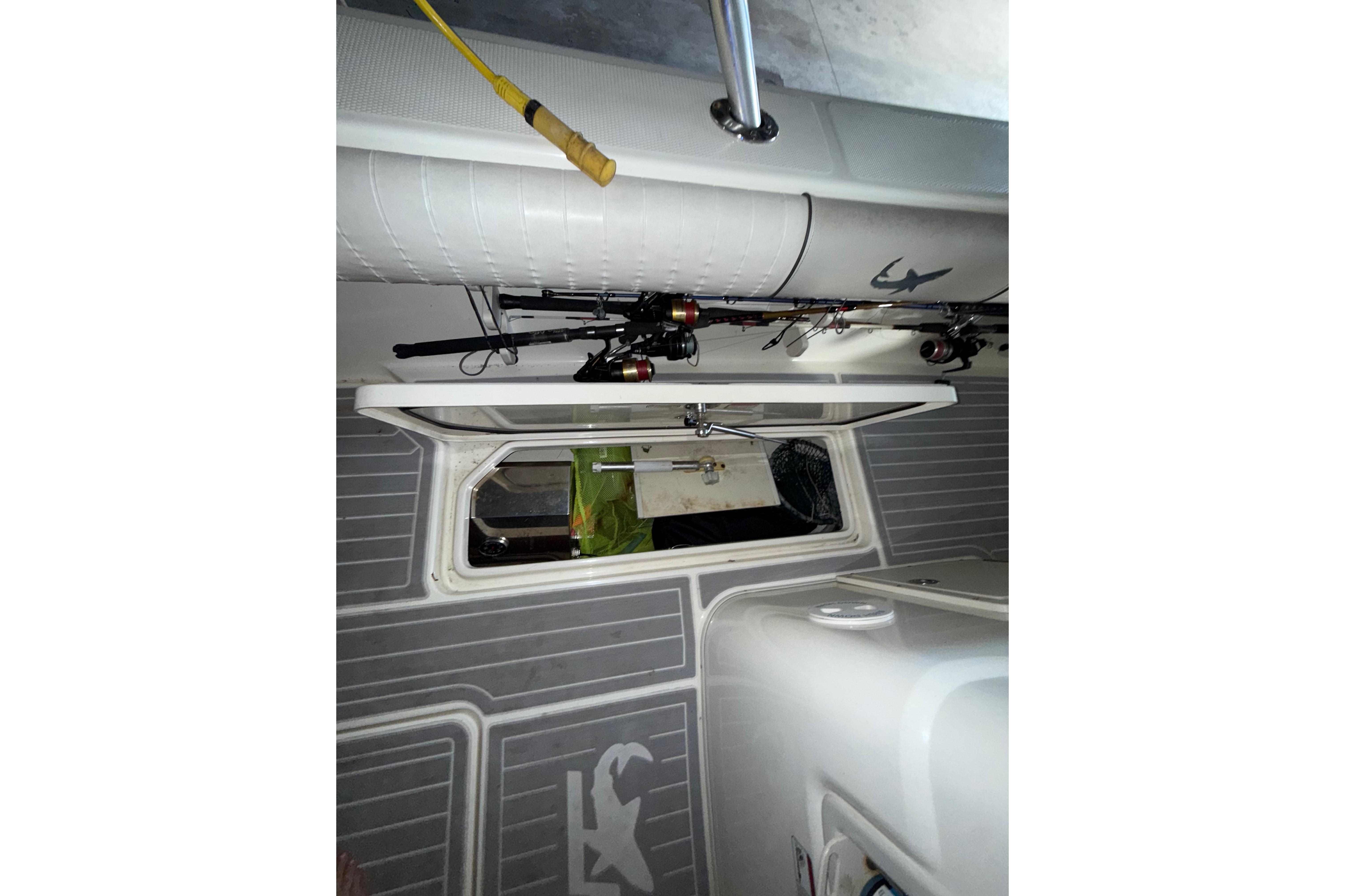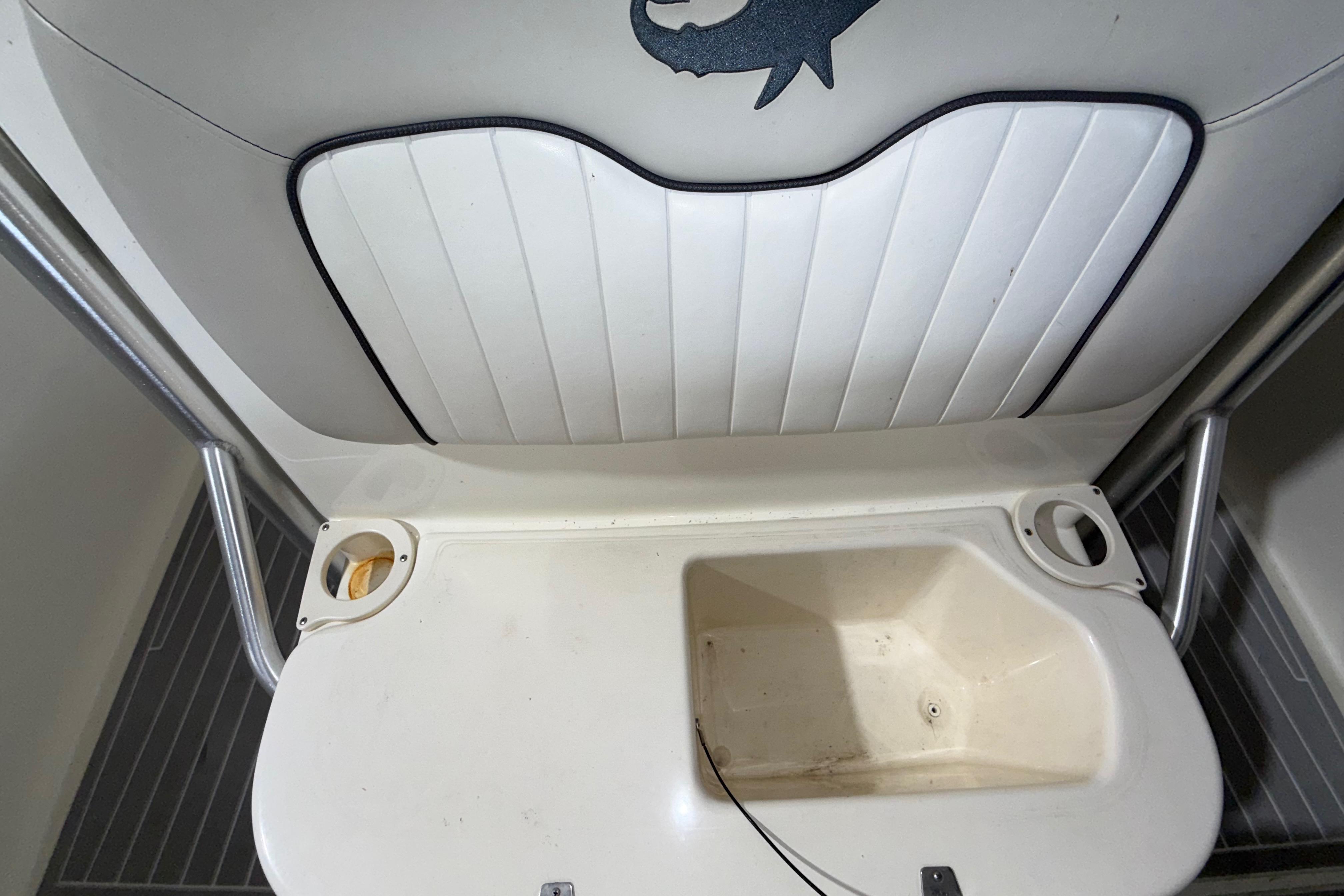 - Bait prep station w/redundant 50-gal. (189.27 L) livewell fed by 1,650 GPH (6,245.93 LPH) pump w/1,100 GPH (4,163.95 LPH) backup pump, removable cutting board, tackle storage, rod holders & sink w/on-demand freshwater