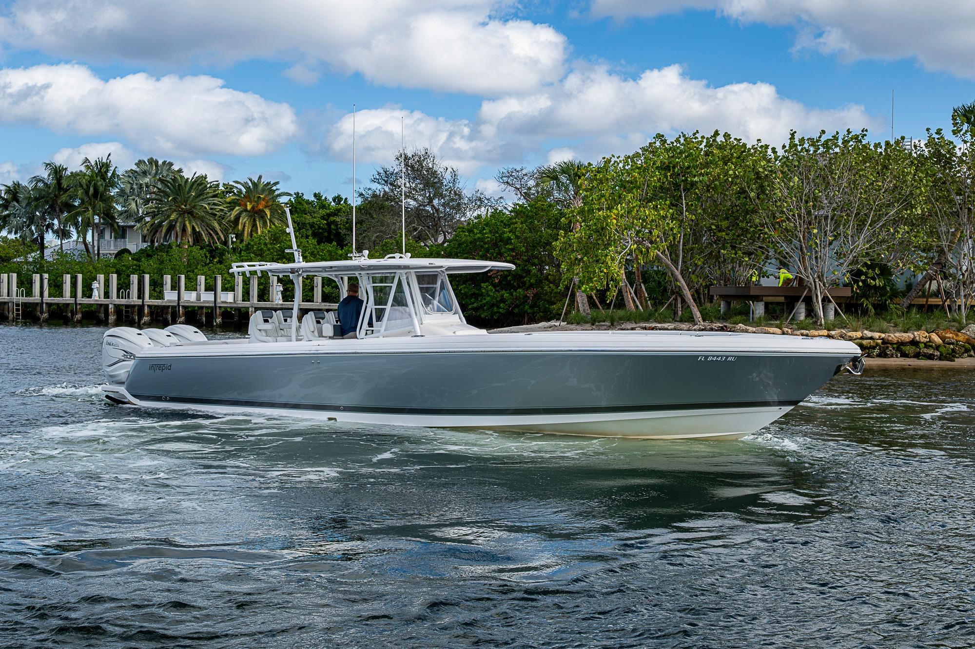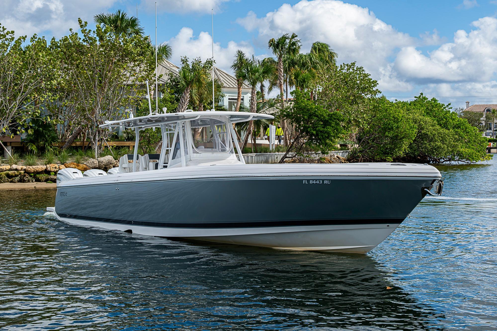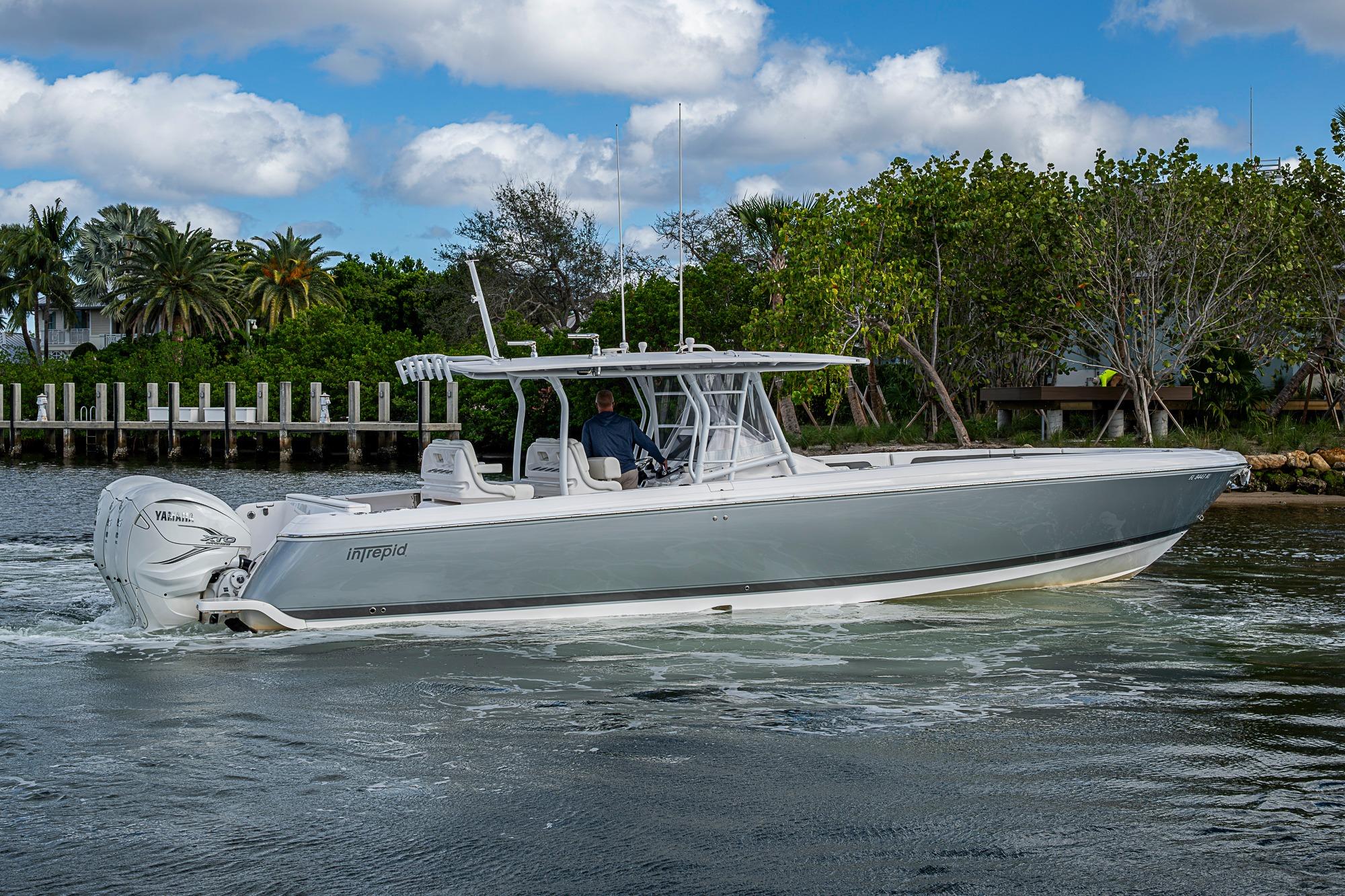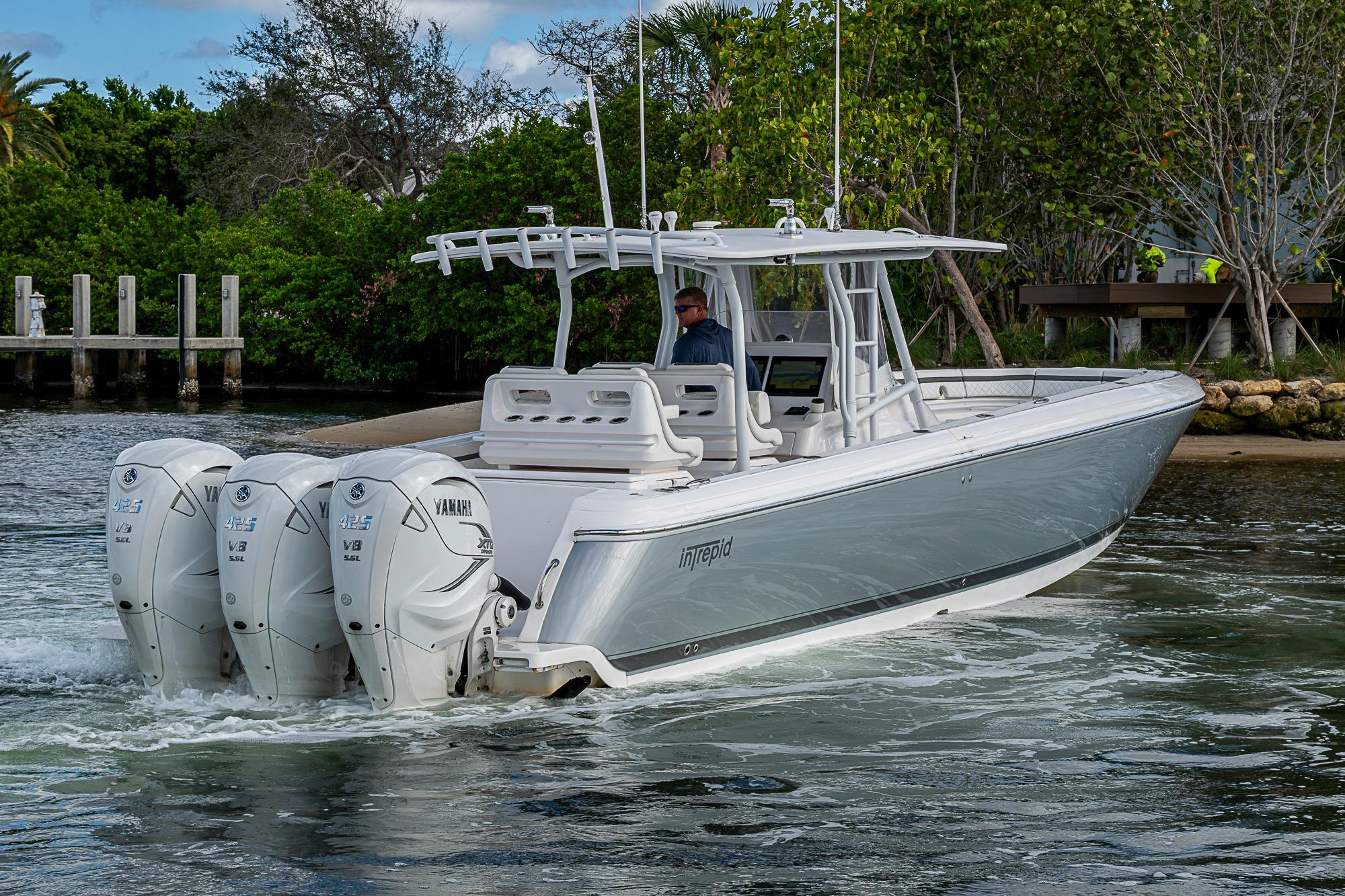 A pristine, high-performance offshore center console with exceptional design and capability. Powered by Triple Yamaha 425 XTO outboards, this 40’ Intrepid delivers incredible acceleration, smooth offshore handling, and serious fishing or cruising versatility. The Front Entry layout provides excellent access to a full head compartment, spacious helm area, and open cockpit. Built with vacuum-infused foam-cored fiberglass and Intrepid’s signature deep-V stepped hull, it’s engineered for comfort, fuel efficiency, and performance. Extensive storage, fishing features, premium seating, and optional electronics make this boat as functional as it is luxurious.