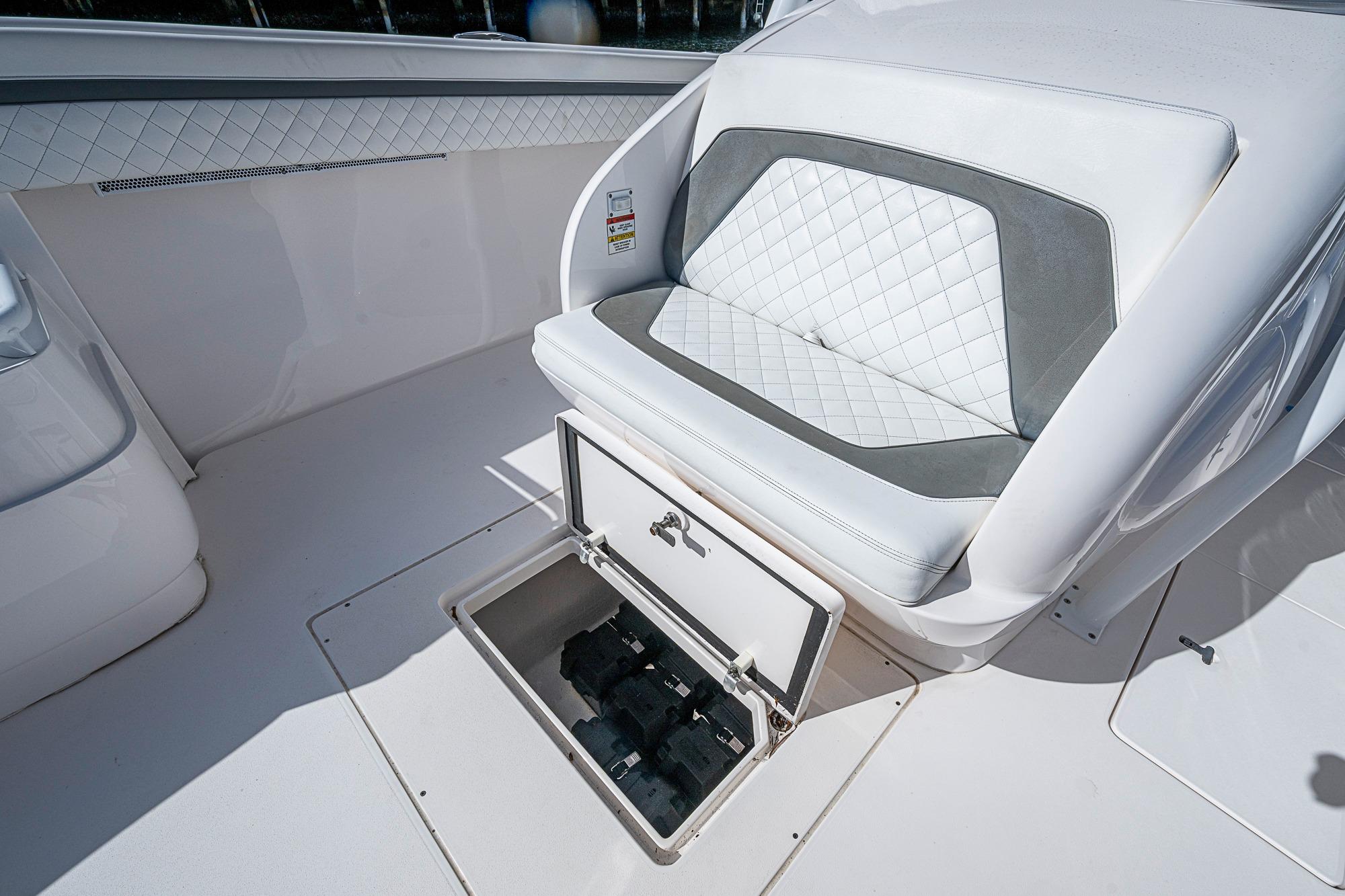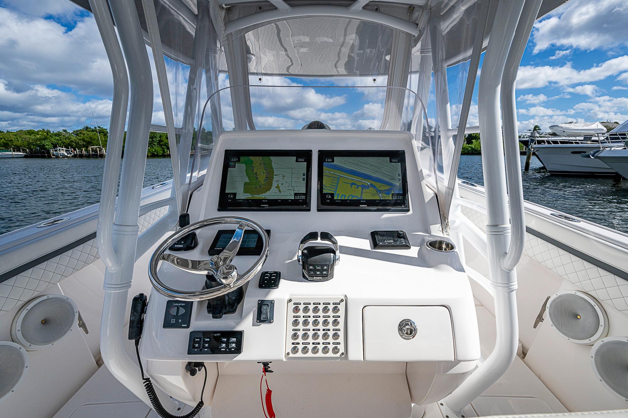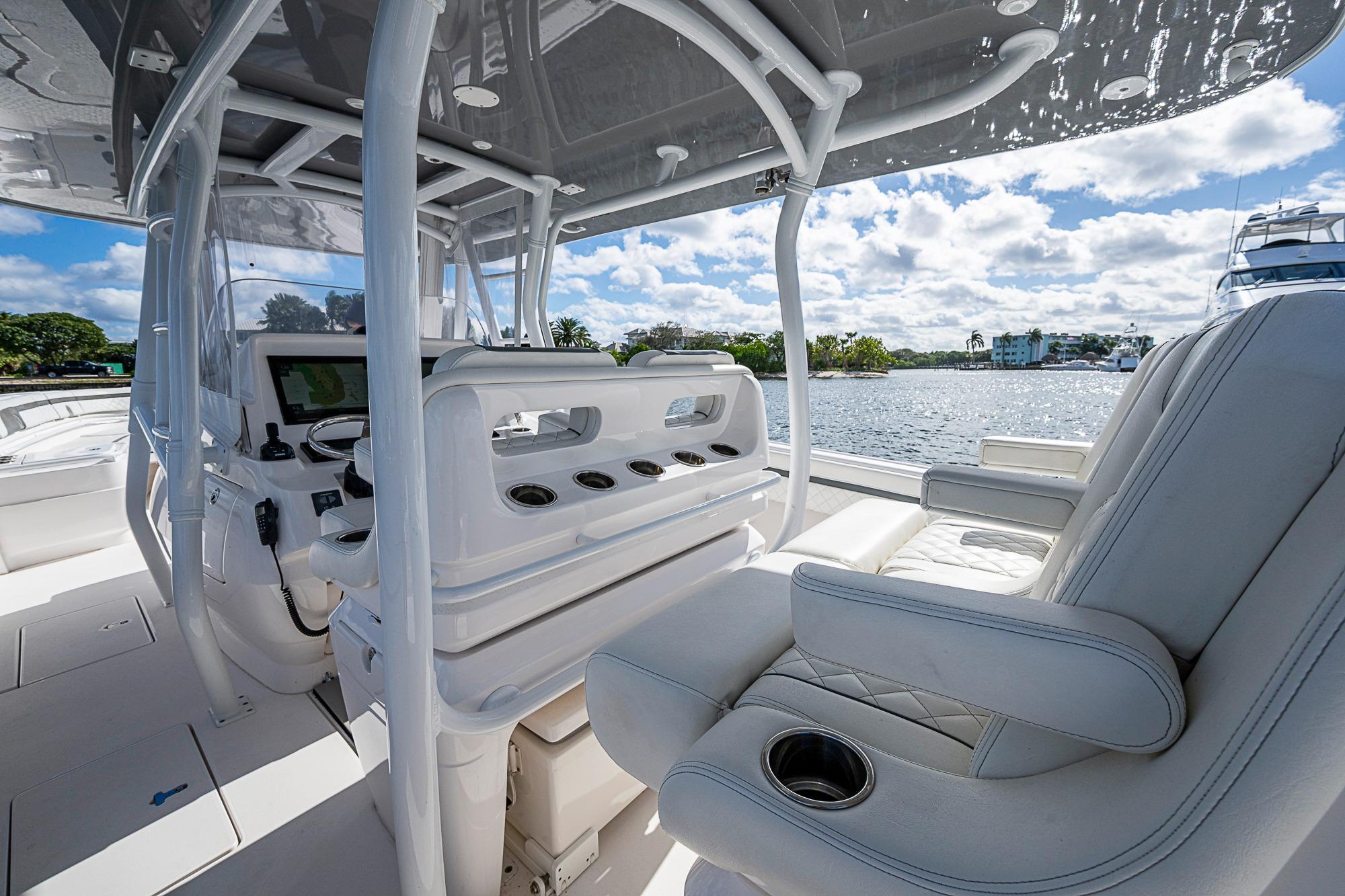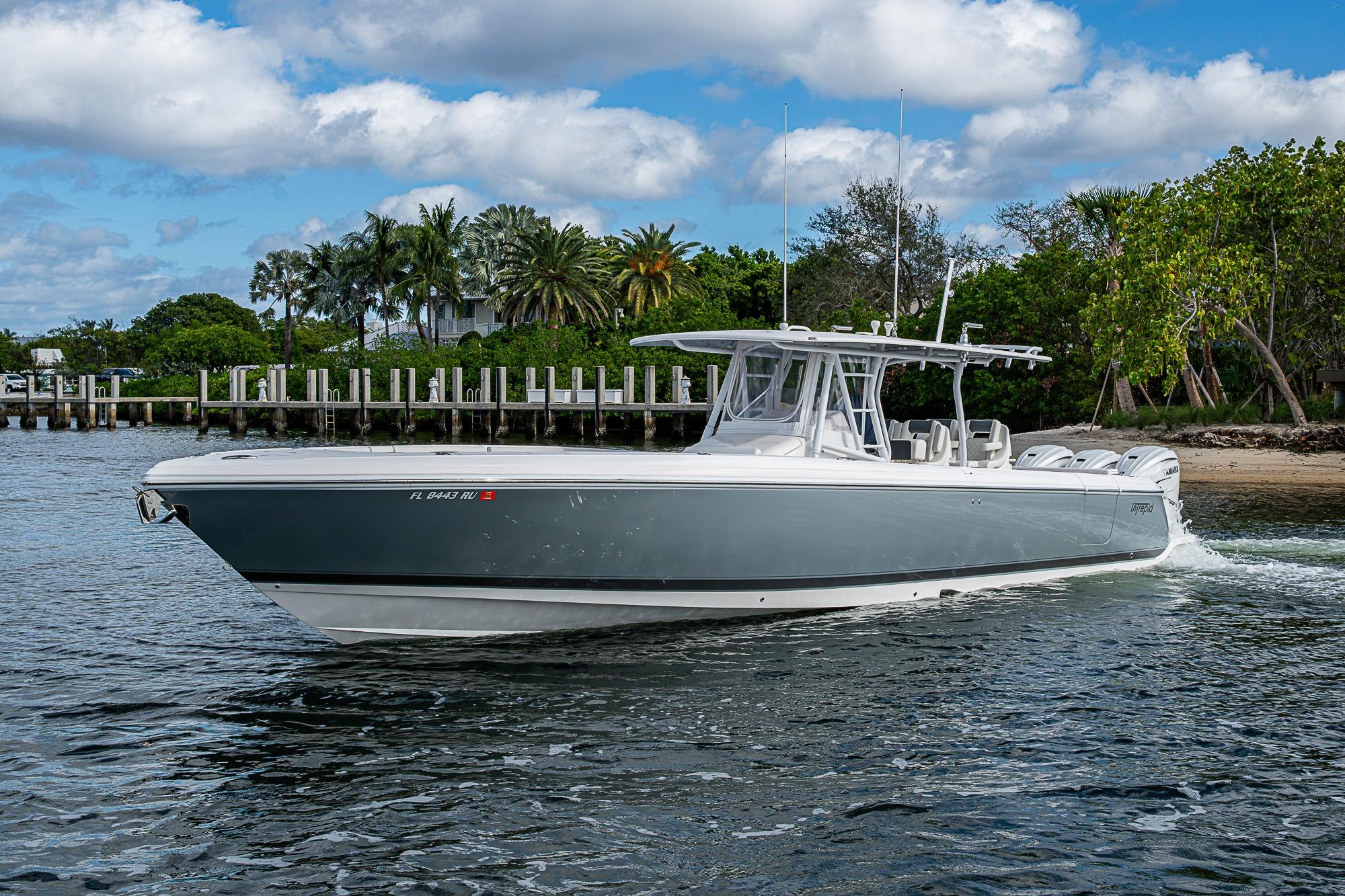 A pristine, high-performance offshore center console with exceptional design and capability. Powered by Triple Yamaha 425 XTO outboards, this 40’ Intrepid delivers incredible acceleration, smooth offshore handling, and serious fishing or cruising versatility. The Front Entry layout provides excellent access to a full head compartment, spacious helm area, and open cockpit. Built with vacuum-infused foam-cored fiberglass and Intrepid’s signature deep-V stepped hull, it’s engineered for comfort, fuel efficiency, and performance. Extensive storage, fishing features, premium seating, and optional electronics make this boat as functional as it is luxurious.