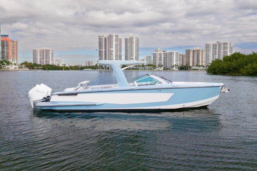 The AV32 OB is Aviara’s flagship outboard model, showcasing sleek, modern styling paired with an intelligently designed layout. Its deep-V hull provides confident handling and a smooth ride, while the spacious cockpit and upscale finishes create a true luxury day-boat environment.