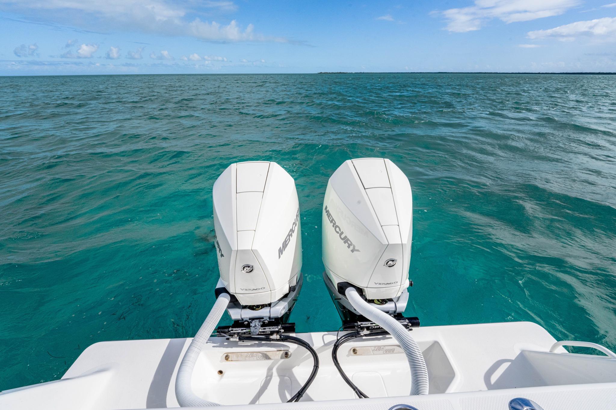 Mercury Verado twin 300 HP V8 AMS Warm Fusion White with 247 hours.