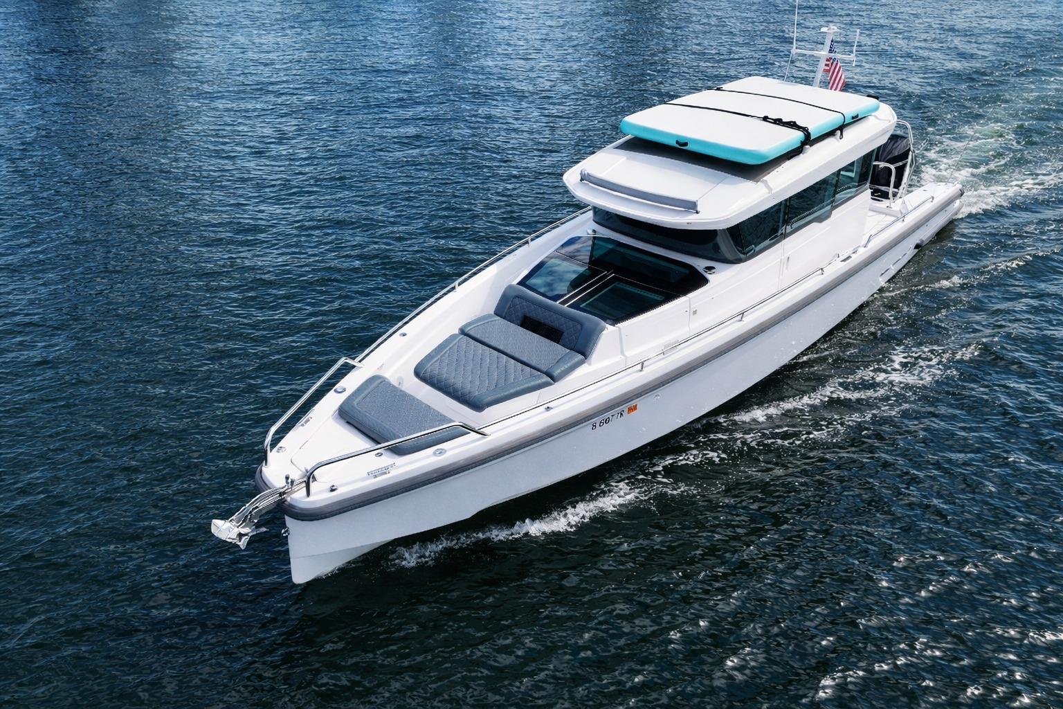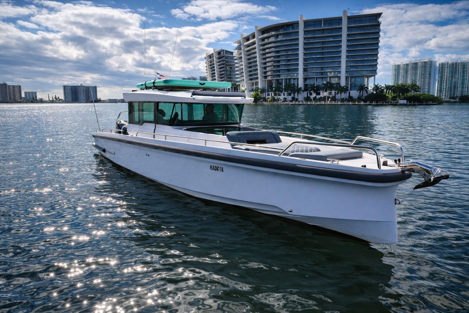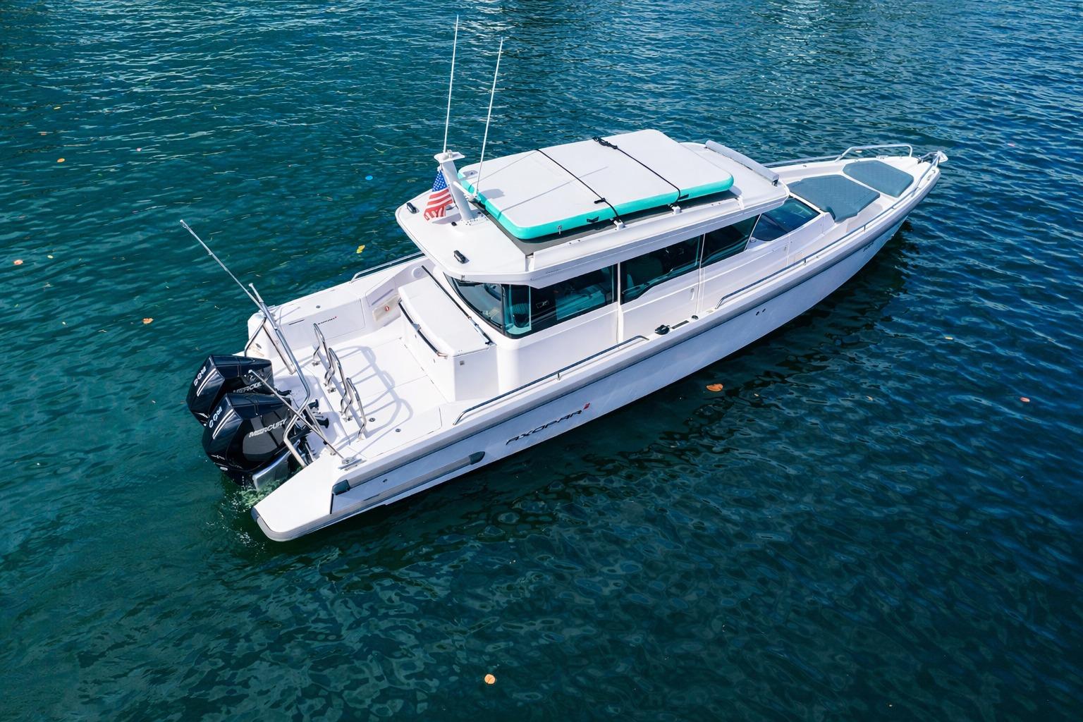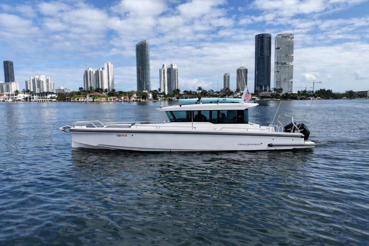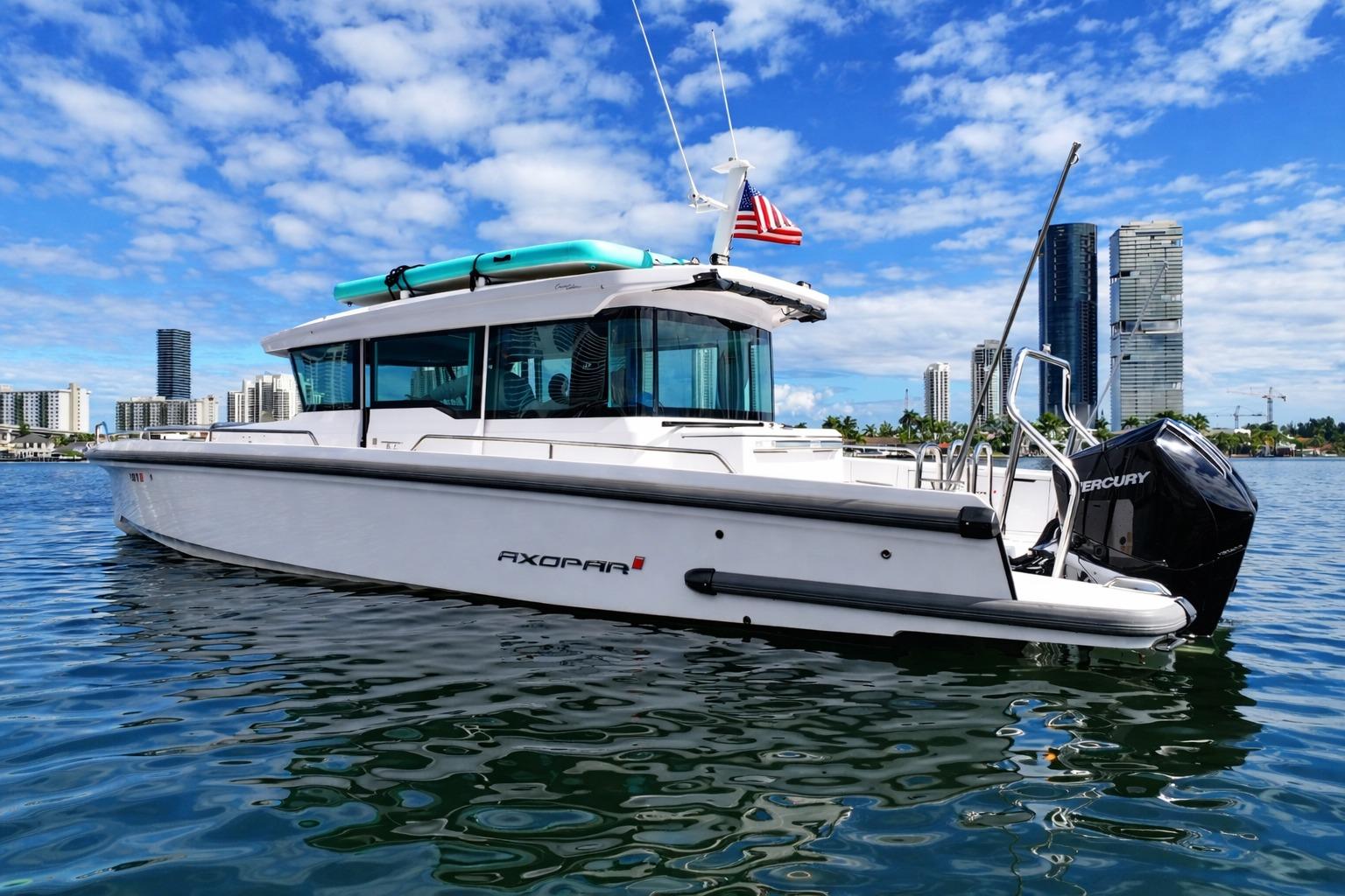 Introducing the stunning 2022 Axopar 37 XC Cross Cabin, a remarkable cruiser that combines elegance with performance. With an overall length of 37 feet, this vessel features a robust fiberglass hull designed in a deep Vee shape, ensuring exceptional stability and handling on the water. Powered by twin 300HP Mercury Verado outboard engines, this boat offers exhilarating cruising speeds of up to 30 knots and a maximum hull speed of 50 knots, making it perfect for adventurous outings.
