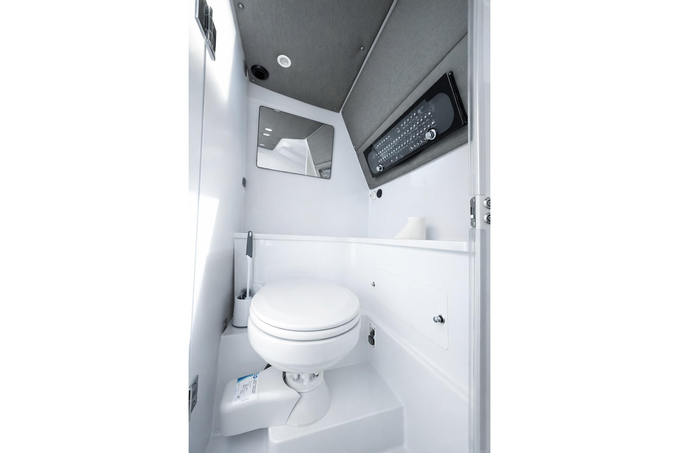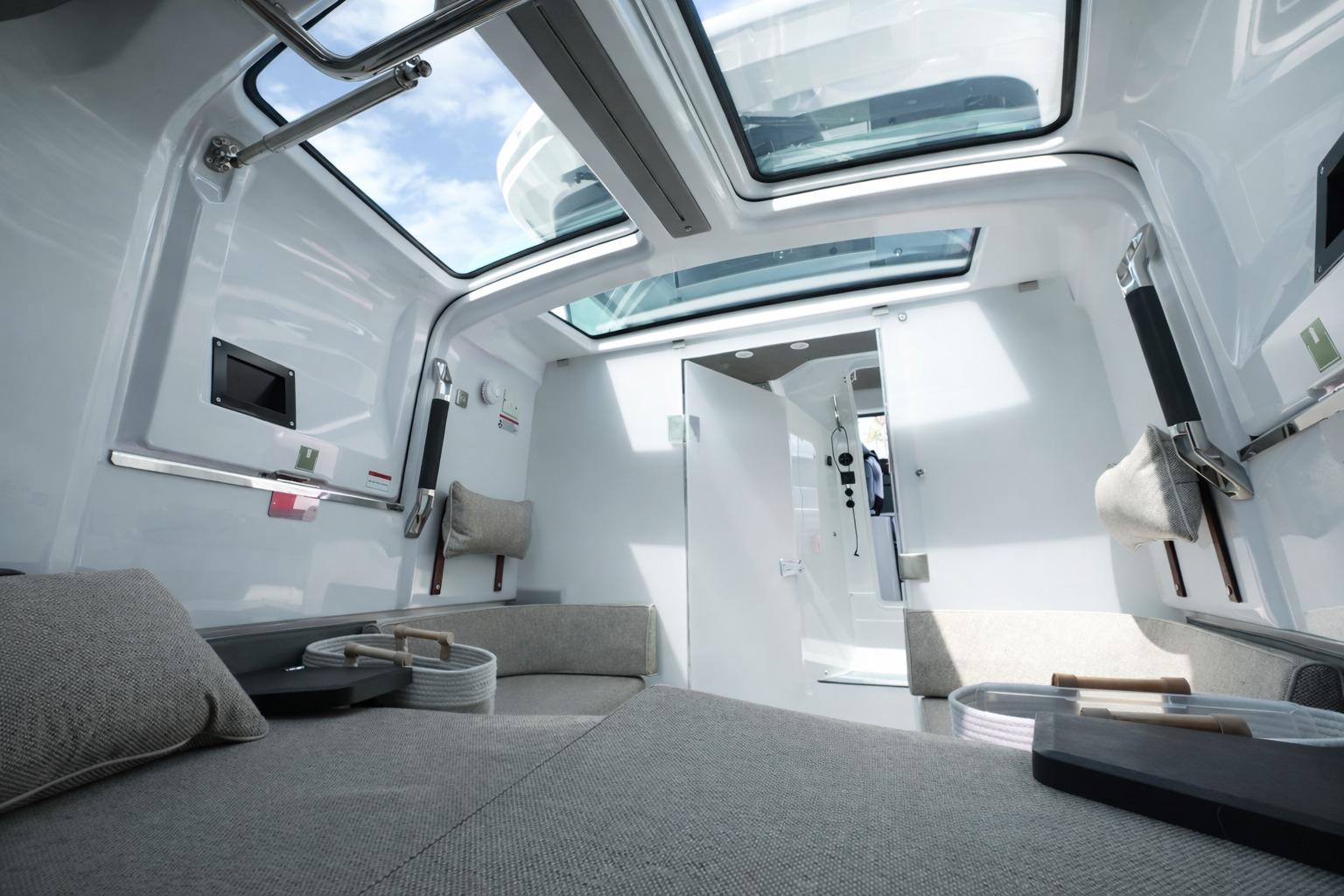 Equipped with modern amenities like roof rack, aft and fore sunshade, electric Windlass with remote control, underwater light, toilet compartment, gullwing doors, the Axopar 37 XC Cross Cabin is designed for comfort and ease.